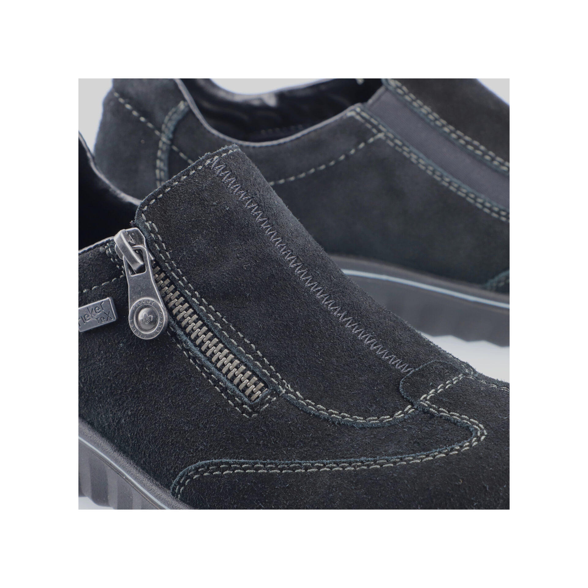 Дамски обувки на немската, комфорт марка Rieker. Лицевата част е комбинация от естествена кожа покрита с Теx мембрана. Хастара се състои от антибактериални, текстилни материали.