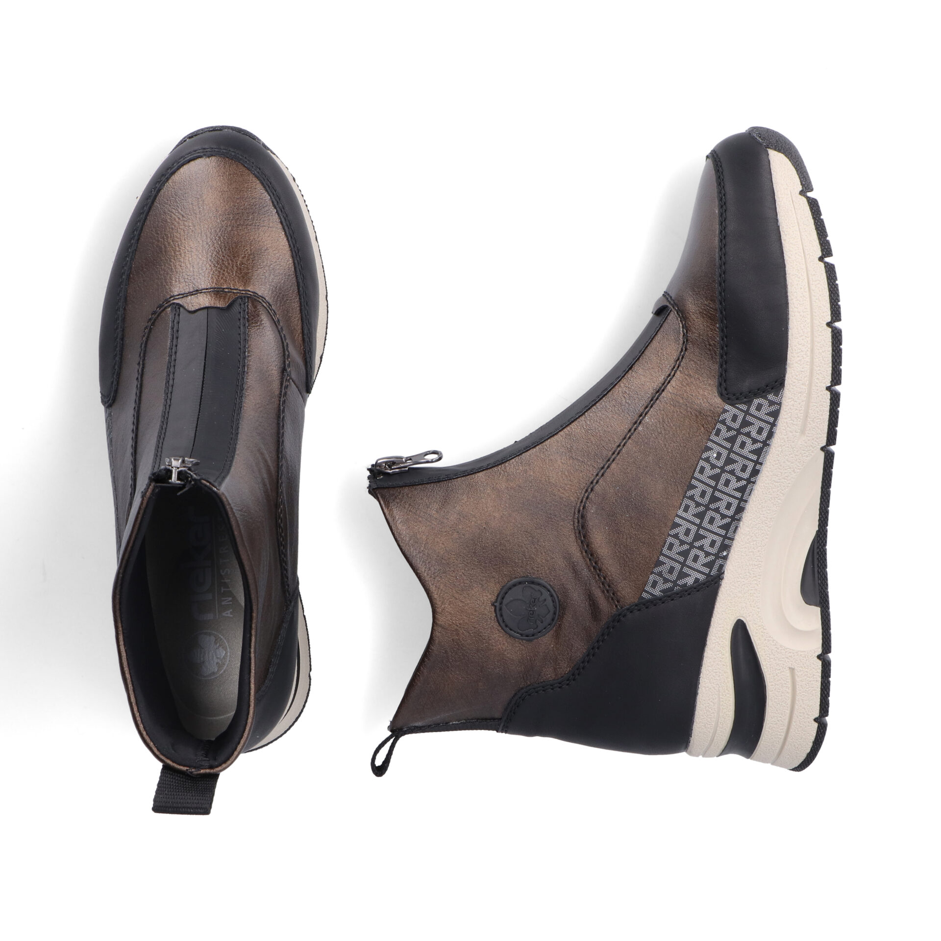Дамски обувки на немската, комфорт марка Rieker. Лицевата част е изработена от еко-кожа. Хастара се състои от антибактериални, текстилни материали.