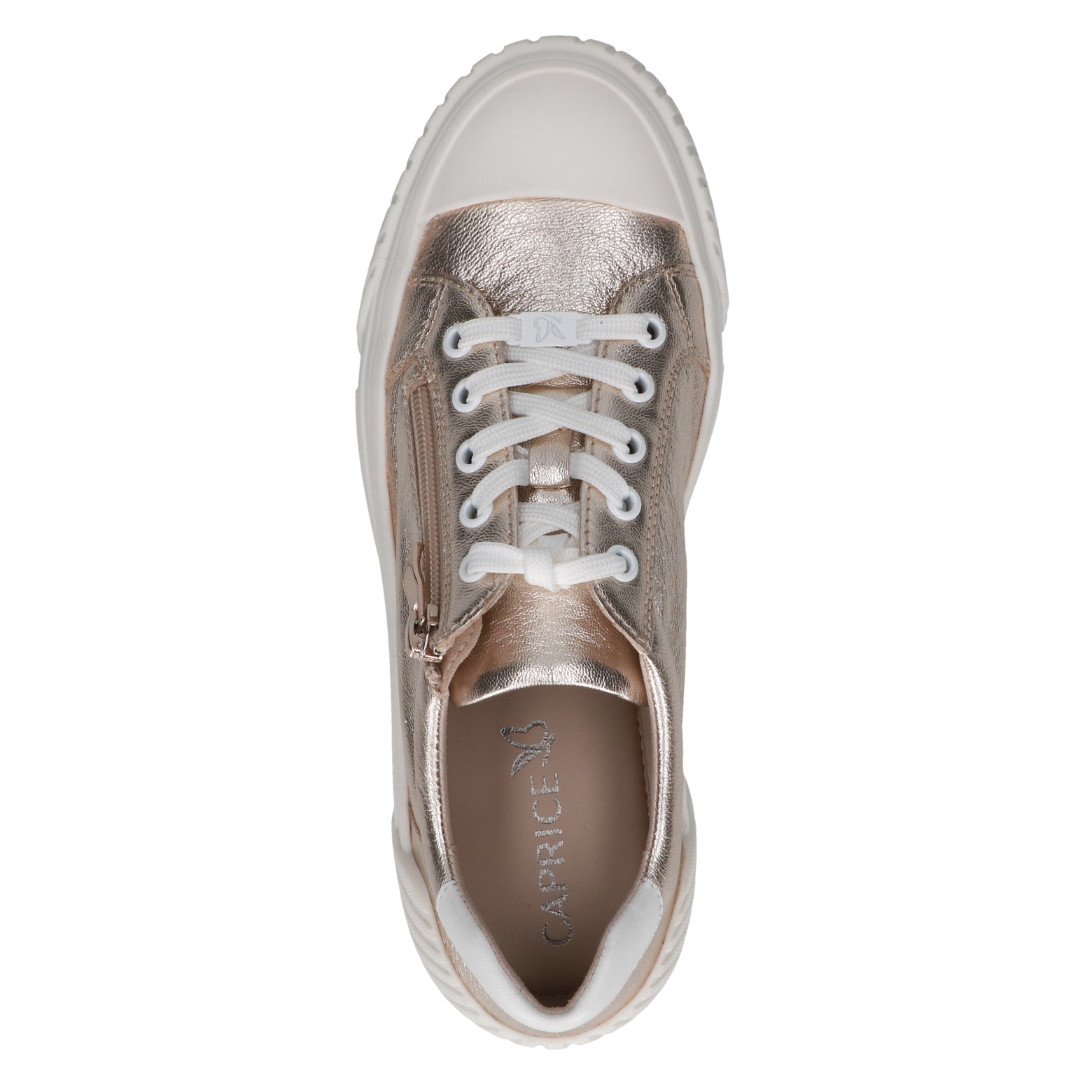 Дамски обувки от немската марка Caprice. Външната част е изработена от естествена кожа. Вътрешната част е комбинация от естествена кожа и текстилни материали. Височината на ходилото в задната част е 3см. Подметката е лека и с изключителни качества на еластичност.
