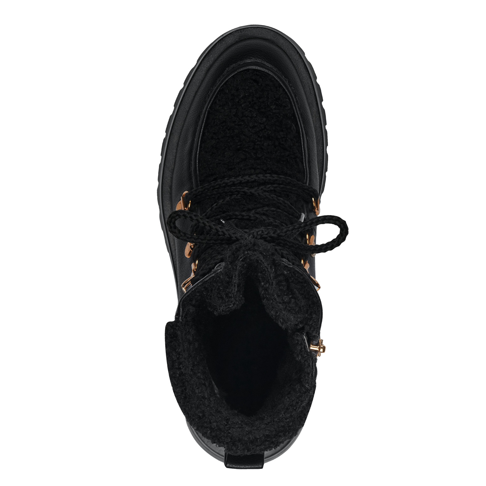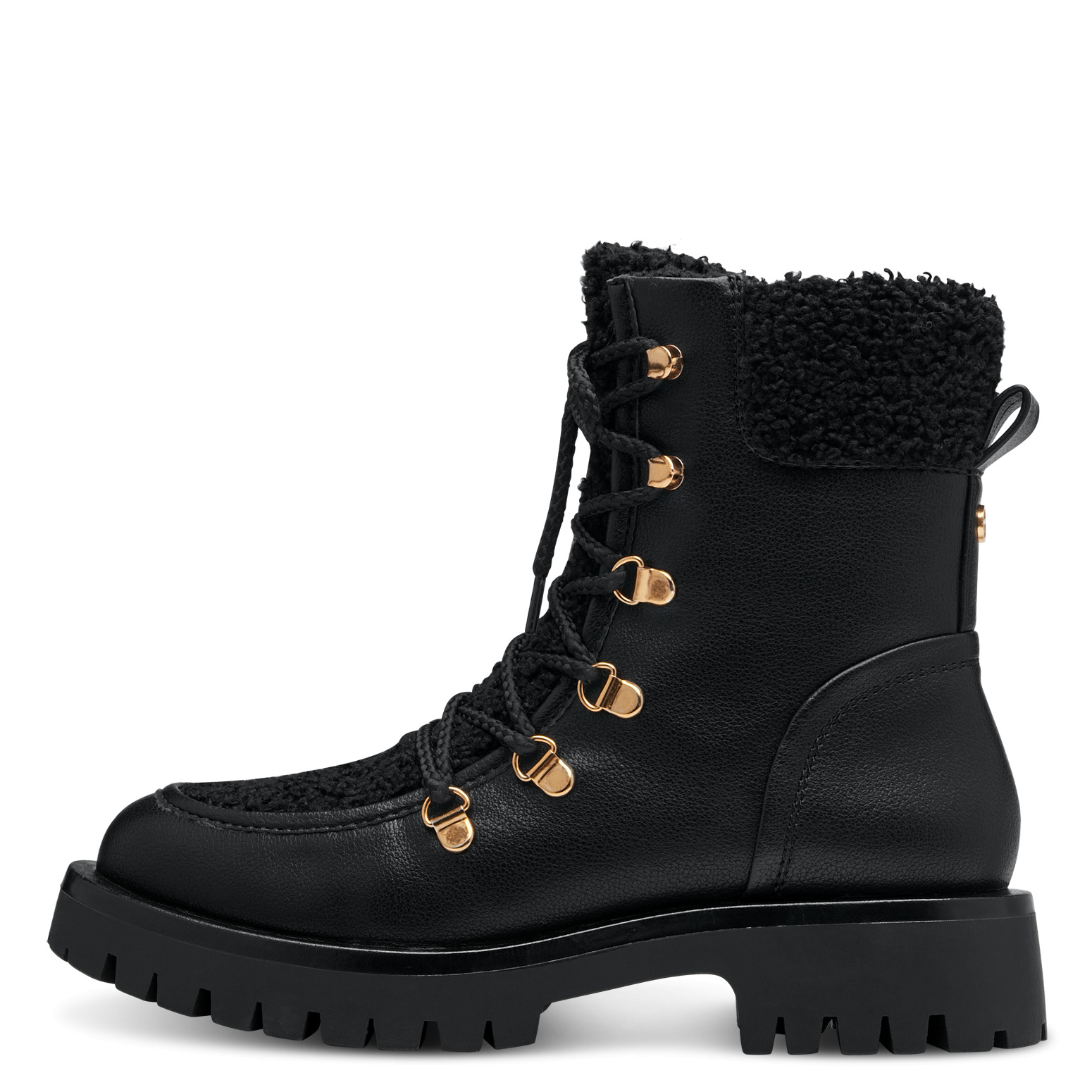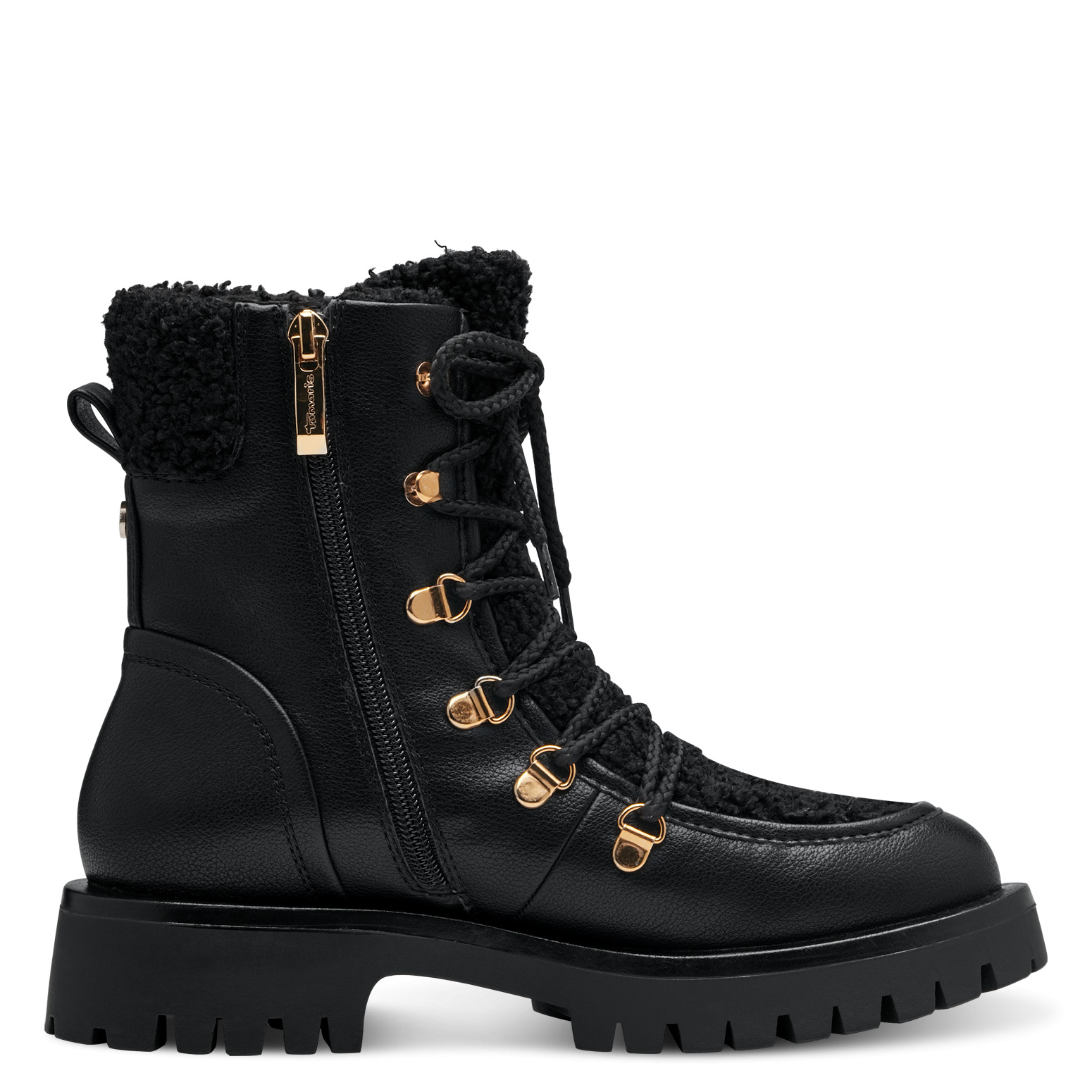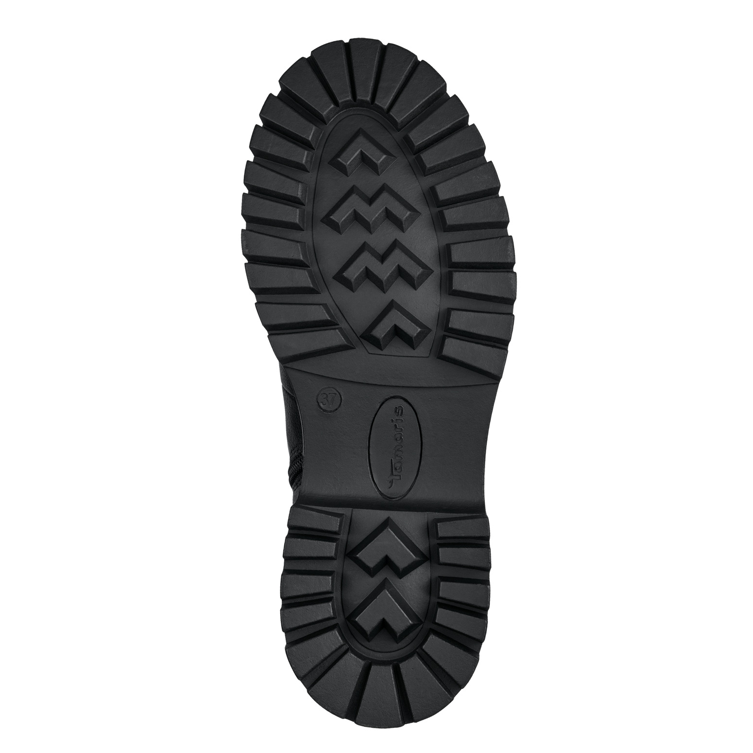 Дамски боти от немската марка Tamaris. Външната част на модела е изработена от висококачествена, еко–кожa и текстил. Вътрешната част е изработена от  топли, текстилни материали и еко-кожа. Височина в задната част е – 5 см. Моделът се закопчава лесно с  цип от вътрешната  страна и връзките . Изключително издръжлив модел, който предпазва крака ви от студ.