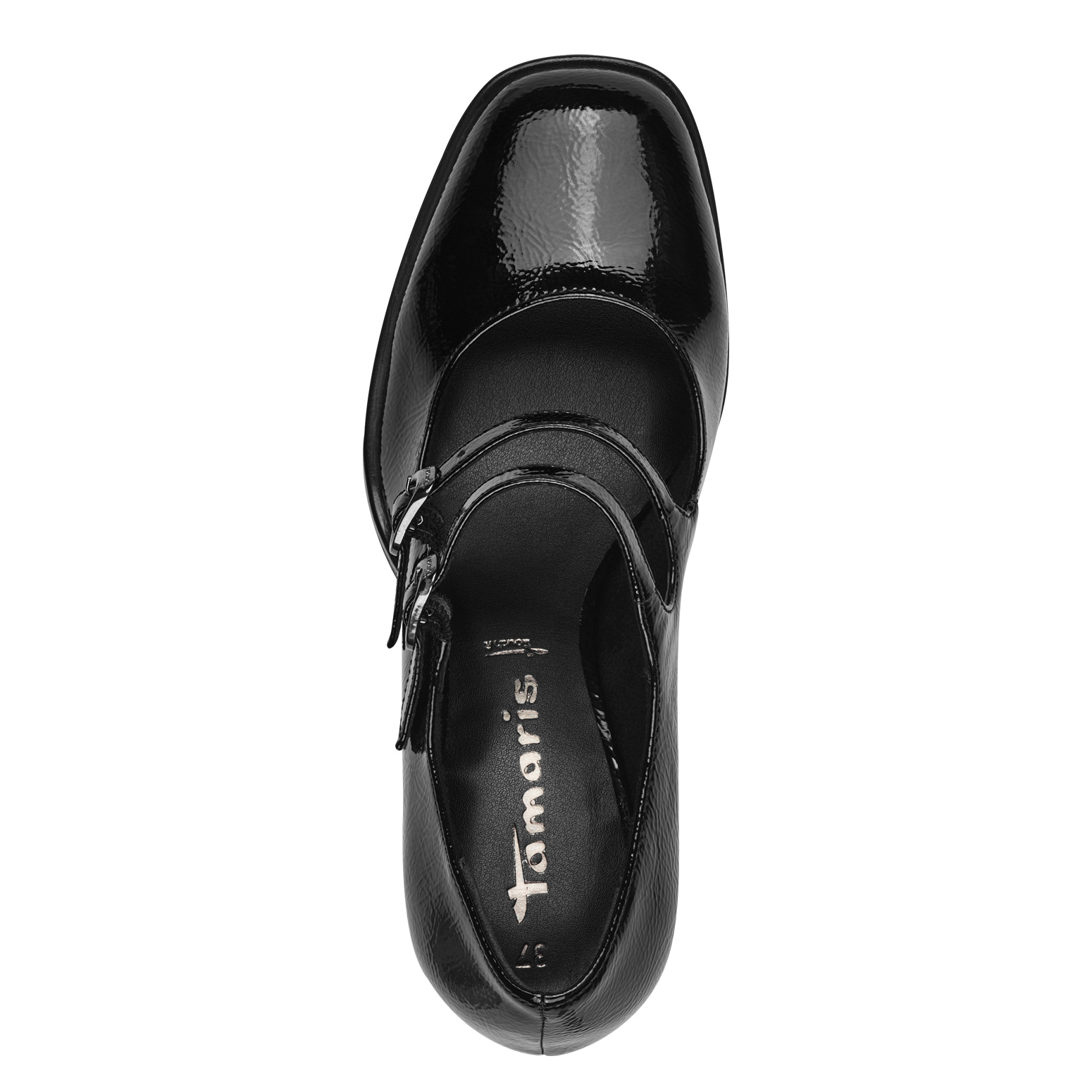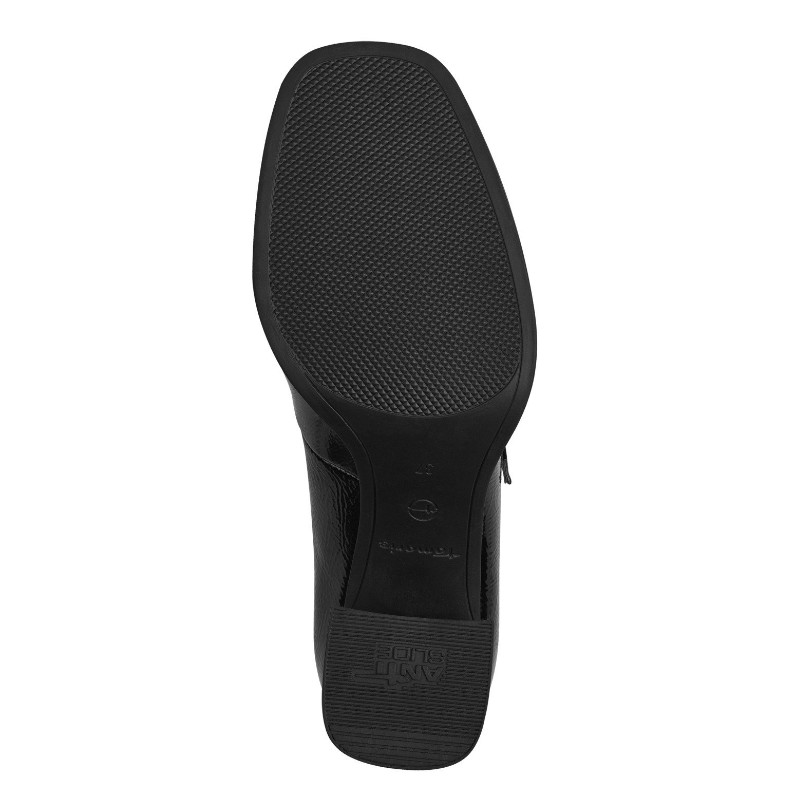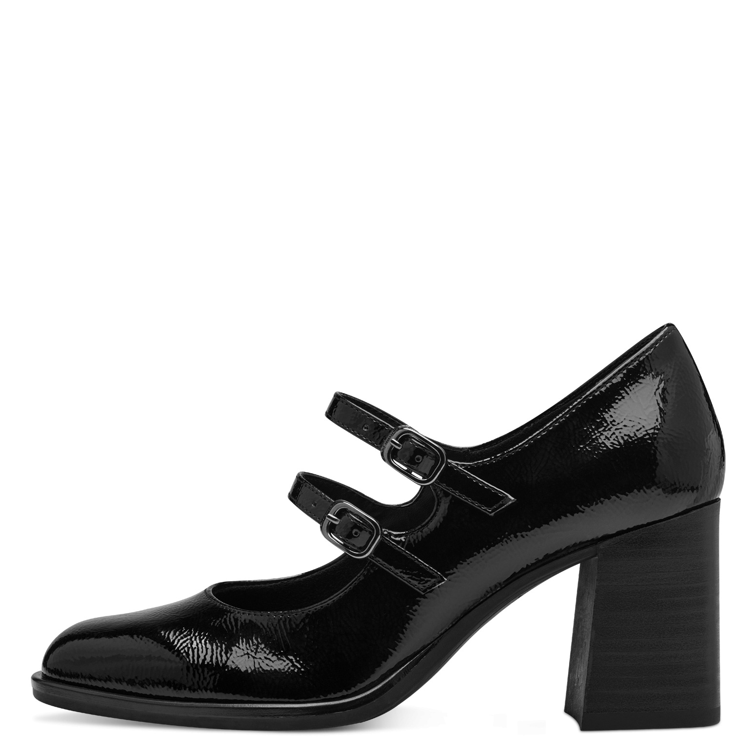 Външната част е изработена от синтетични материали покрити с лак. Вътрешната е комбинация от антибактериален текстил и изкуствена кожа. Технологията за изработка на стелката ви гарантира оптимален комфорт на ходилото. Височината на тока е 7.5 см.