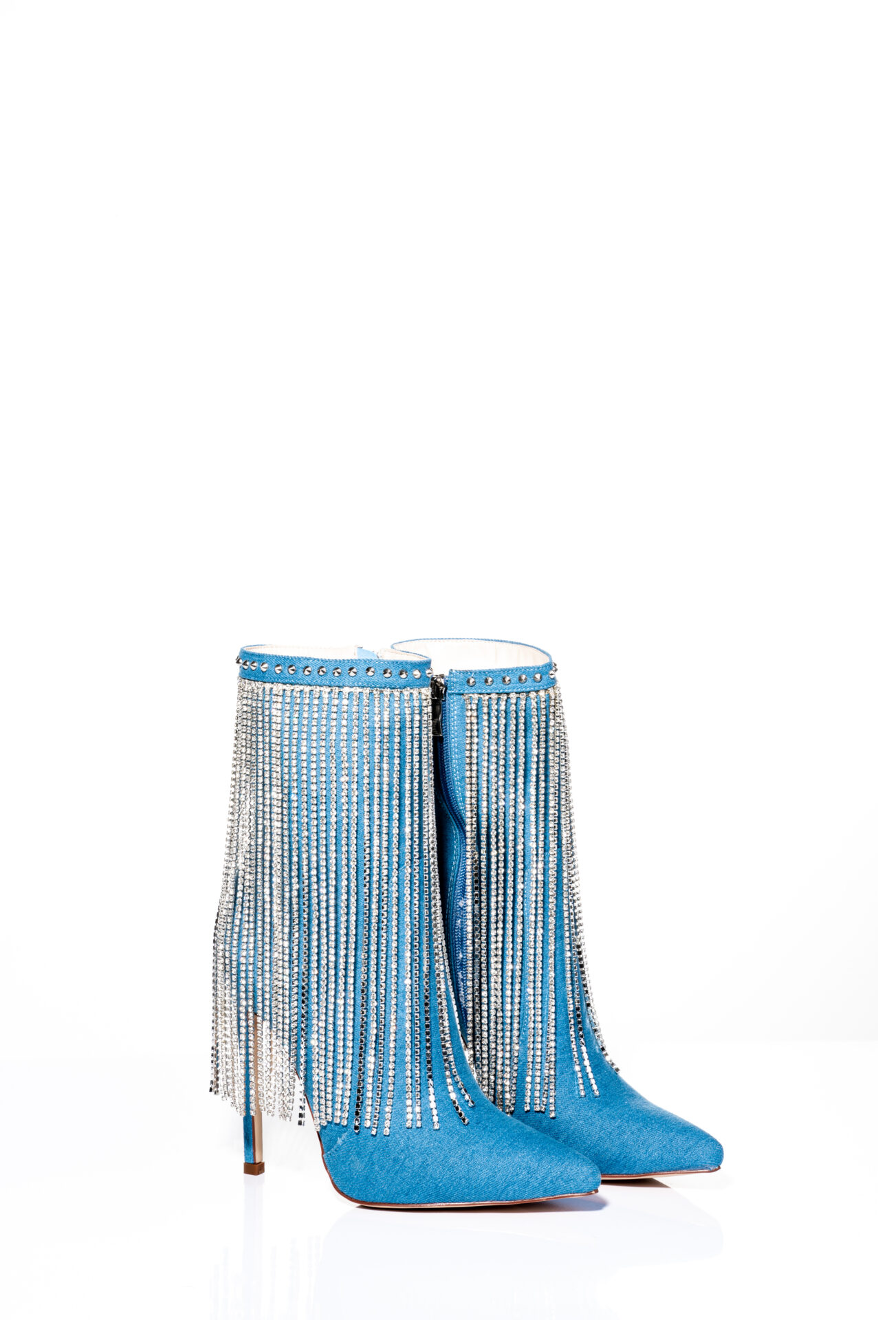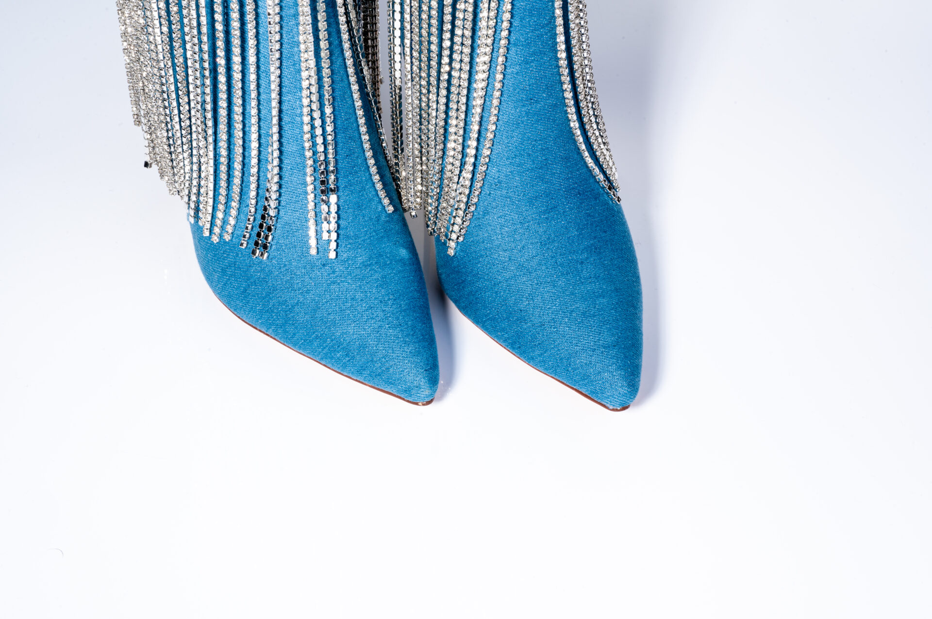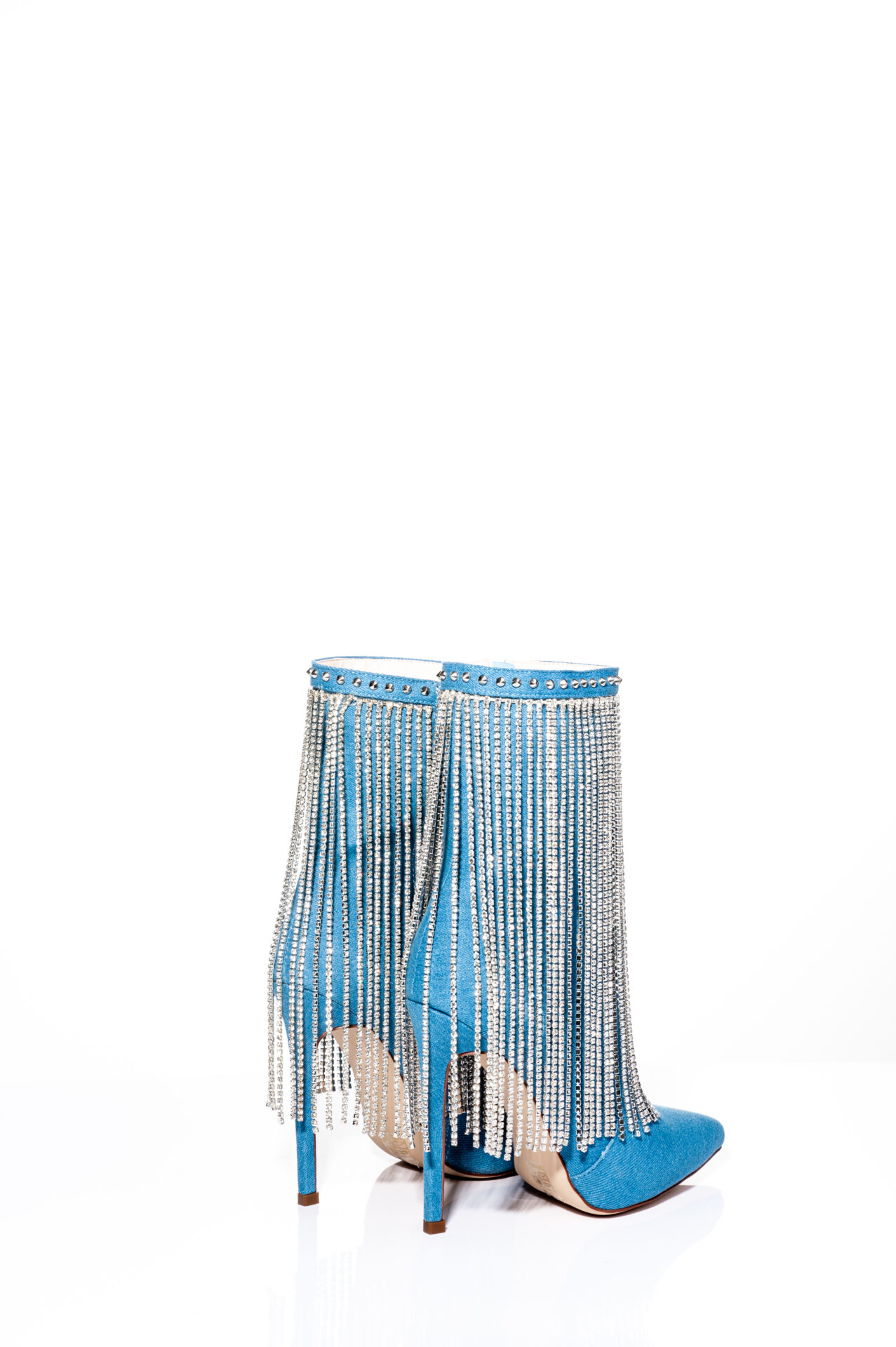 SCARLET предлага ботуши, изработени от висококачествен деним, украсени със зашеметяващи кристали. Перфектни за добавяне на нотка блясък към всеки ансамбъл, тези ботуши със сигурност ще ви донесат комфорт и стил.