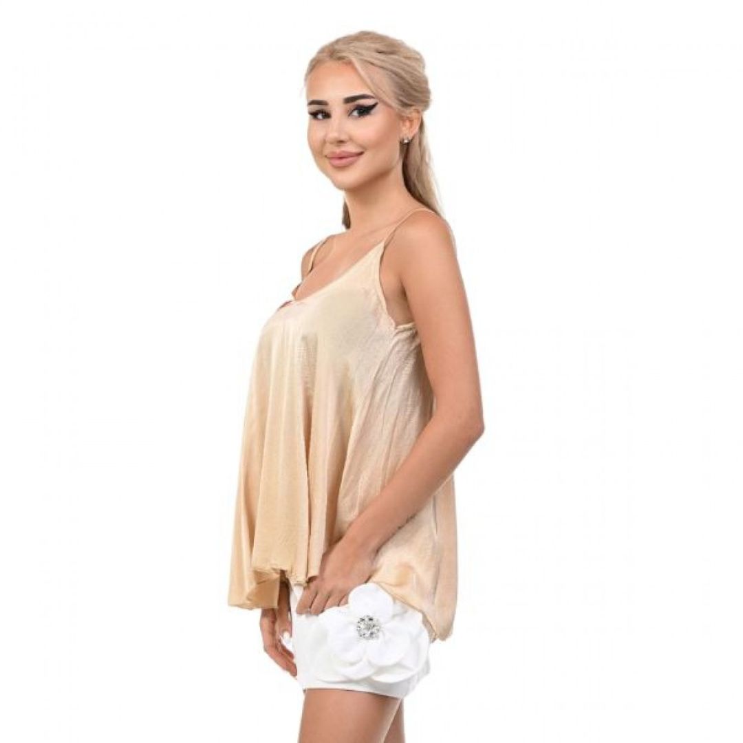 Сатененият потник YONCY е истински символ на елегантност и стил, идеален за жената, която цени финеса и удобството в своето облекло. Изработен от висококачествен сатен, този потник впечатлява със своята гладка и лъскава текстура, която нежно обгръща тялото и създава усещане за лукс. Наситеният бежов цвят придава мистерия и класа на визията, правейки го лесен за съчетаване с разнообразни аутфити – от класически поли и панталони до смели аксесоари. Потникът YONCY е идеалният избор за всяка дама, която иска да подчертае своята изтънченост, както в ежедневието, така и на специални събития.