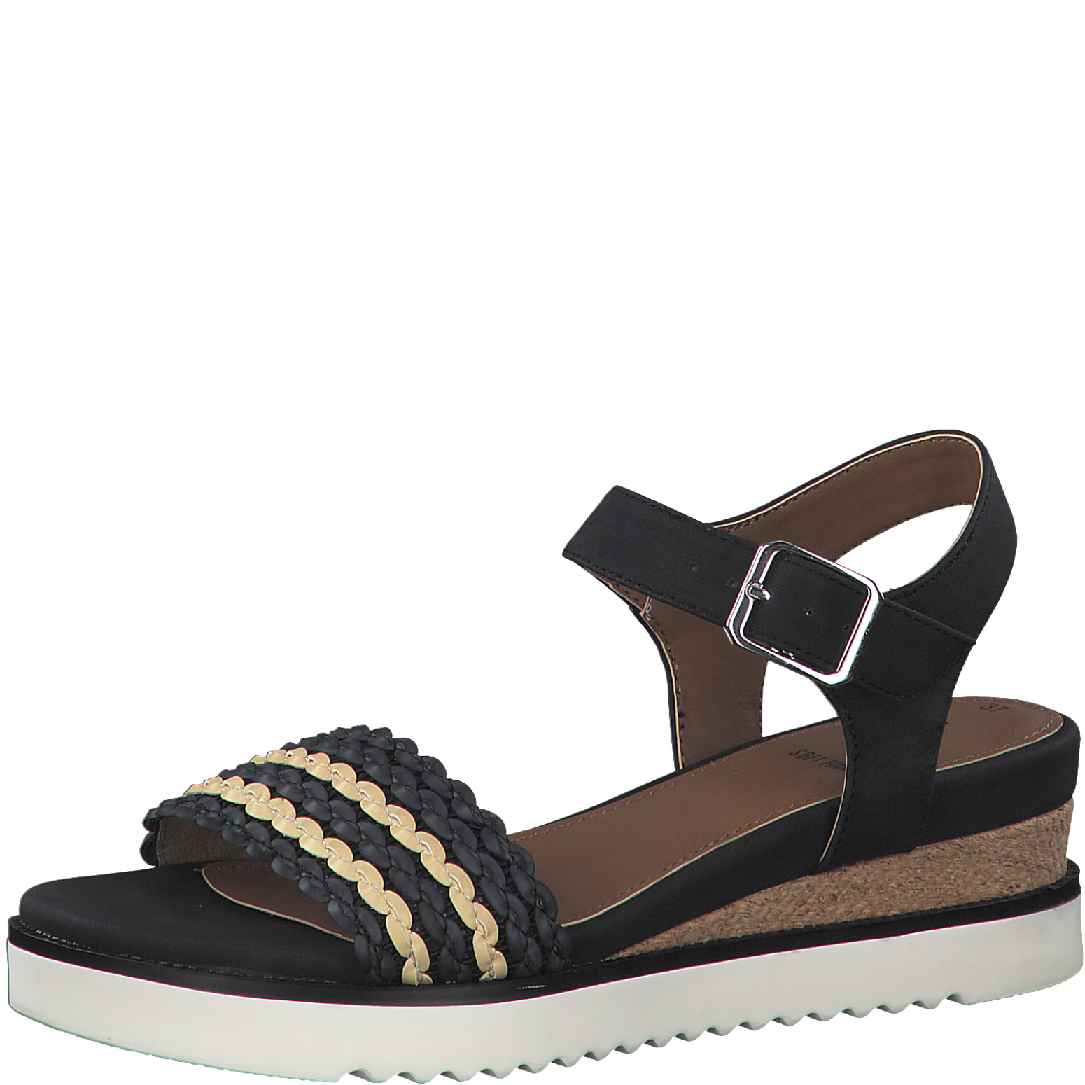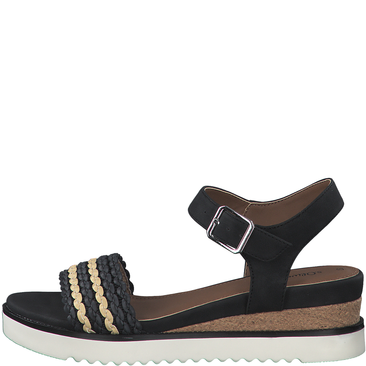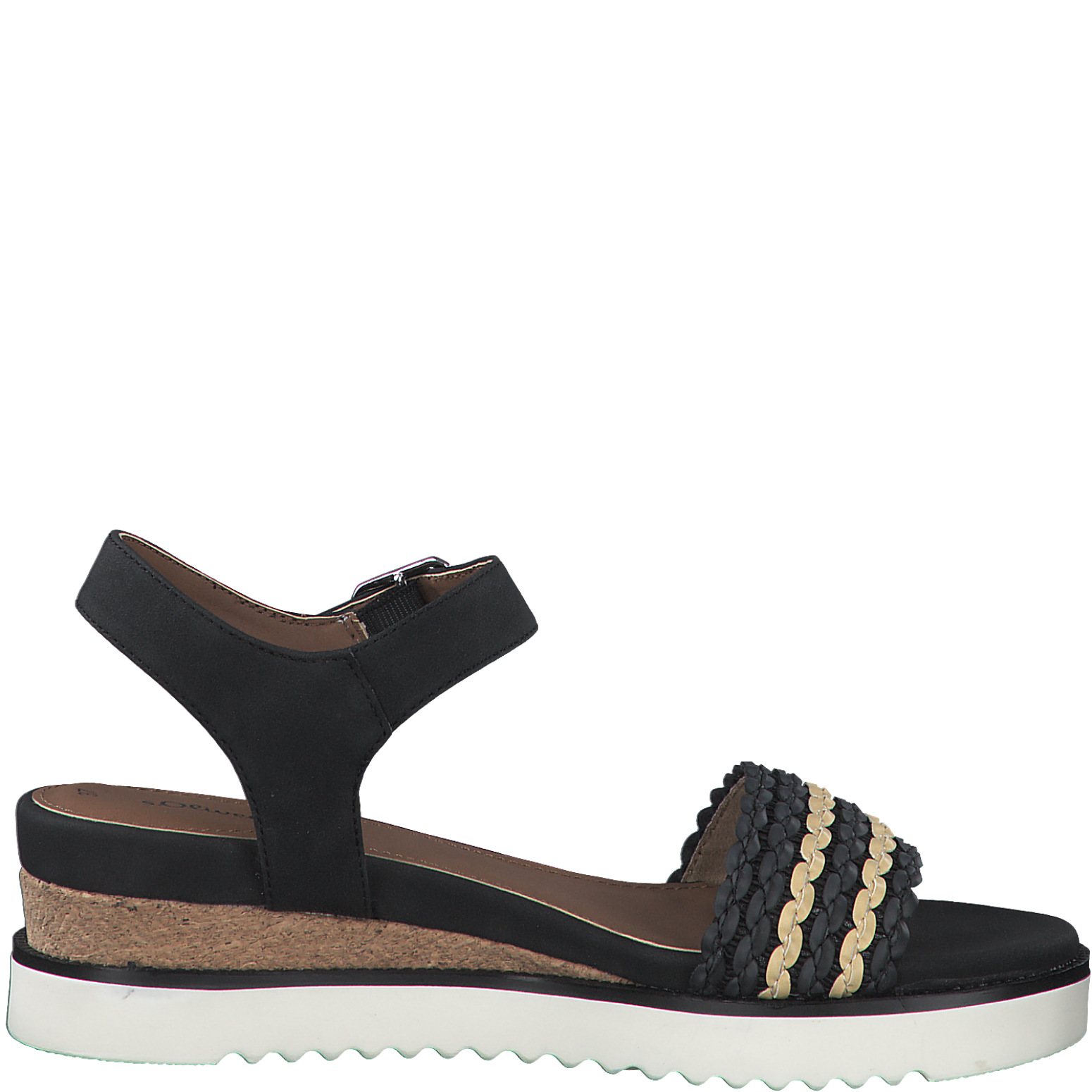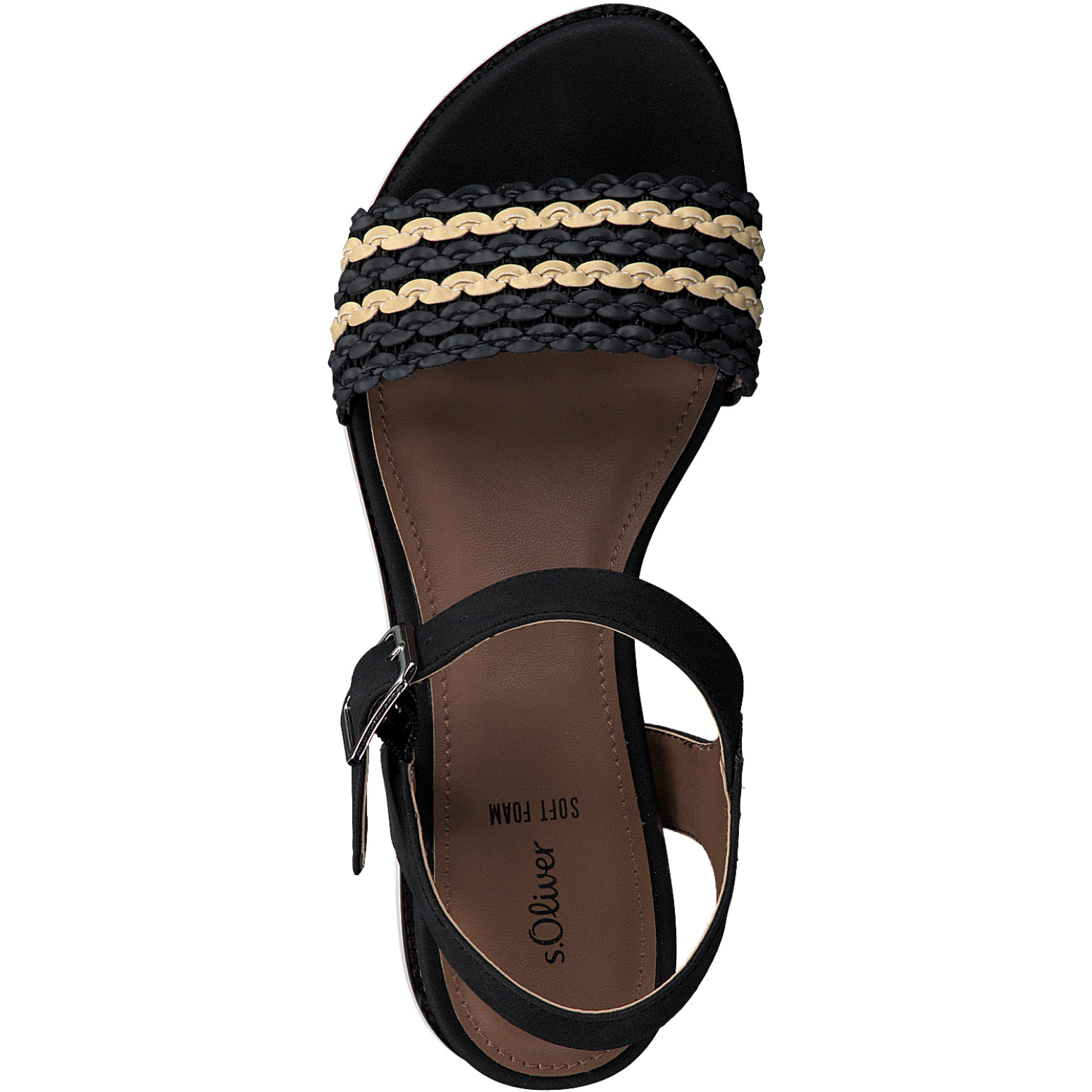 Дамски сандали от немската марка S.Oliver. Изработени са от висококачествени, синтетични материали. Височината на платформата е 5.5см. Мека, стелка се грижи за оптималния комфорт.