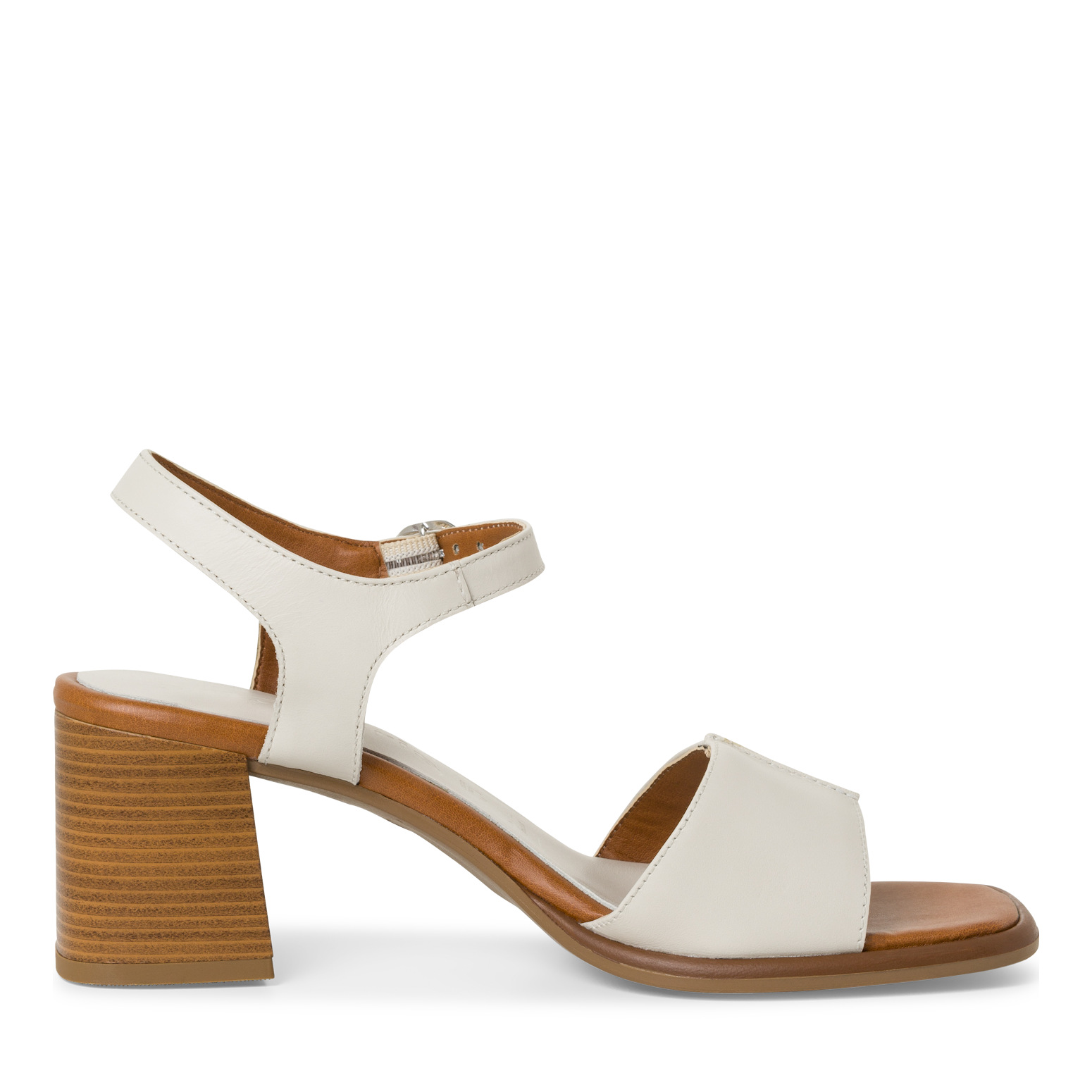 Дамски сандали на ток Tamaris естествена кожа Touch it слонова кост