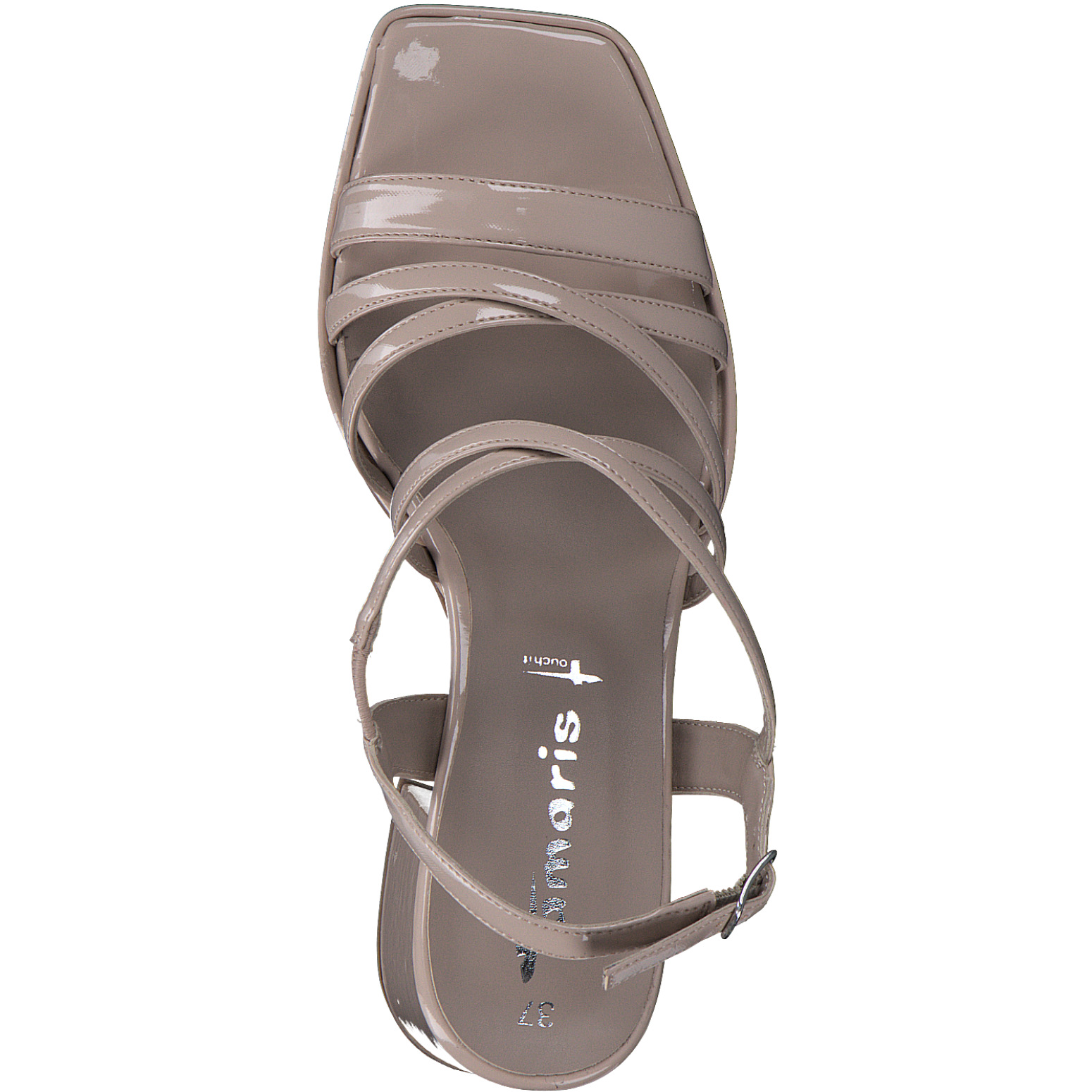 Дамски елегантни сандали от немската марка Tamaris. Изработени от висококачествена еко-кожа покрита с лак. Височината на тока е 7.5 см. Мека стелка от еко- кожа с touch it технология за оптималния Ви комфорт. Подметката е лека и удобна.