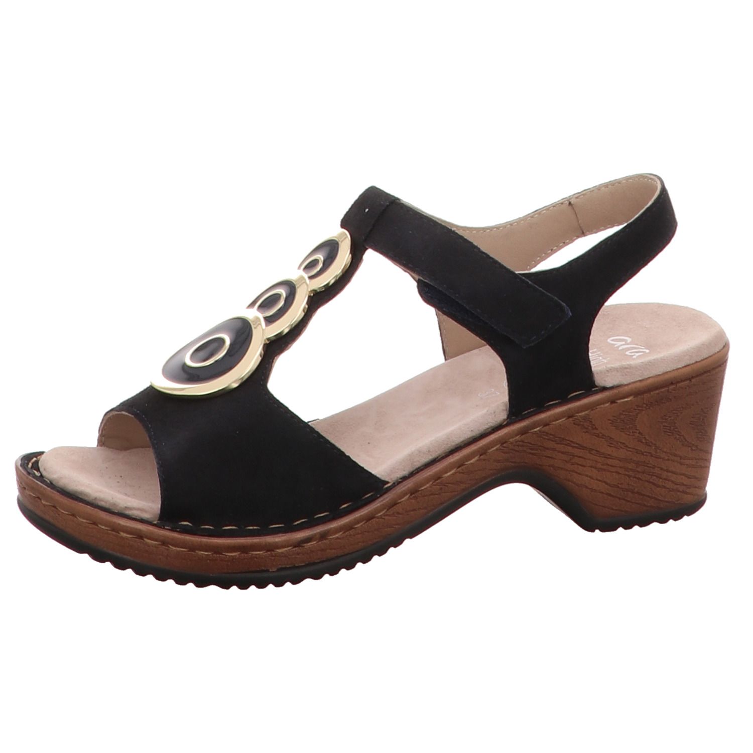 Дамски сандали от австрийската марка Ara. Външната и вътрешната част са изработени от висококачествена естествена кожа. Височината на платформата в задната част е 5 см – удобна и полезна височина. Обуват се лесно и са подходящи и за по-високи сводове. Мека стелка и лека подметка са гаранция за оптимален комфорт.