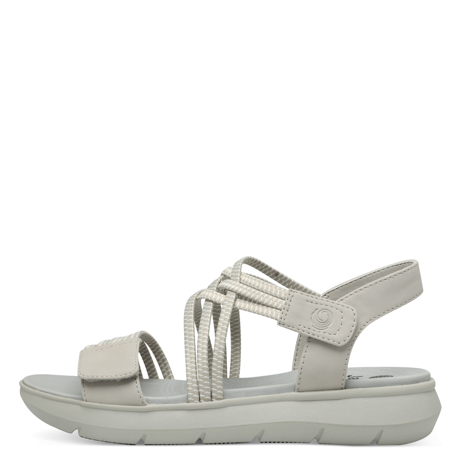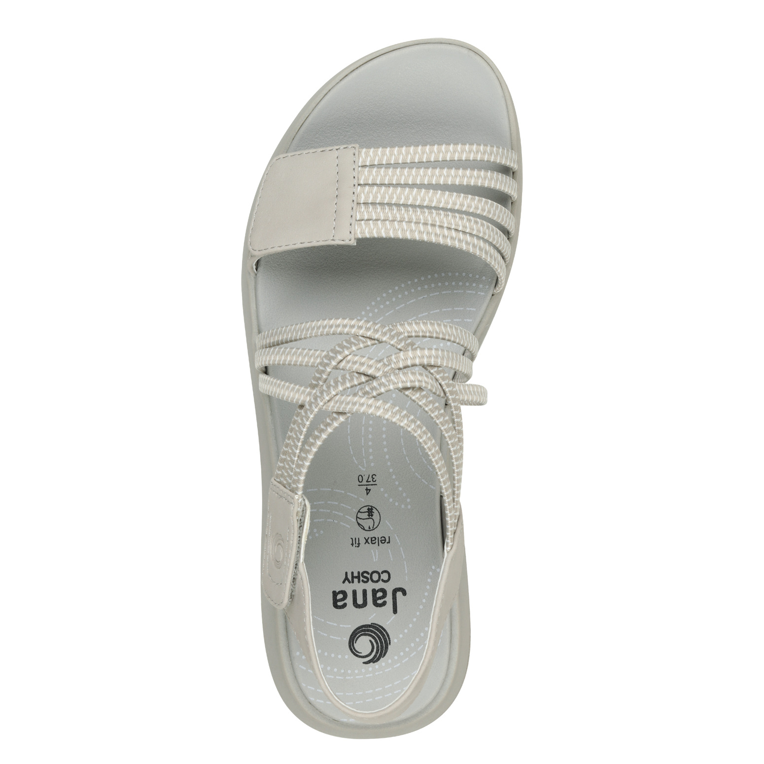 Дамски сандали от немската марка Jana. Външната и вътрешната част са изработени от еко-кожа и текстилни материали. Височината на подметката е 3.5 см. Подметката е лека и много гъвкава. Моделът е реализиран в ширина H – подходящи за по-широки ходила.