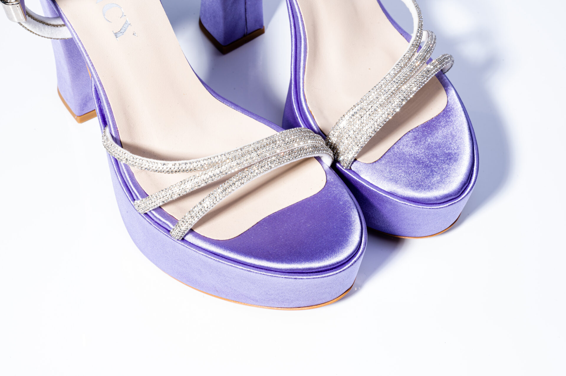 – Горната част на сандалите е направена от  сатен.