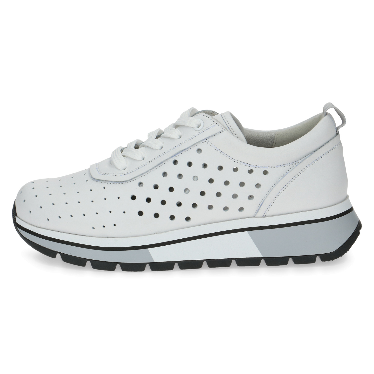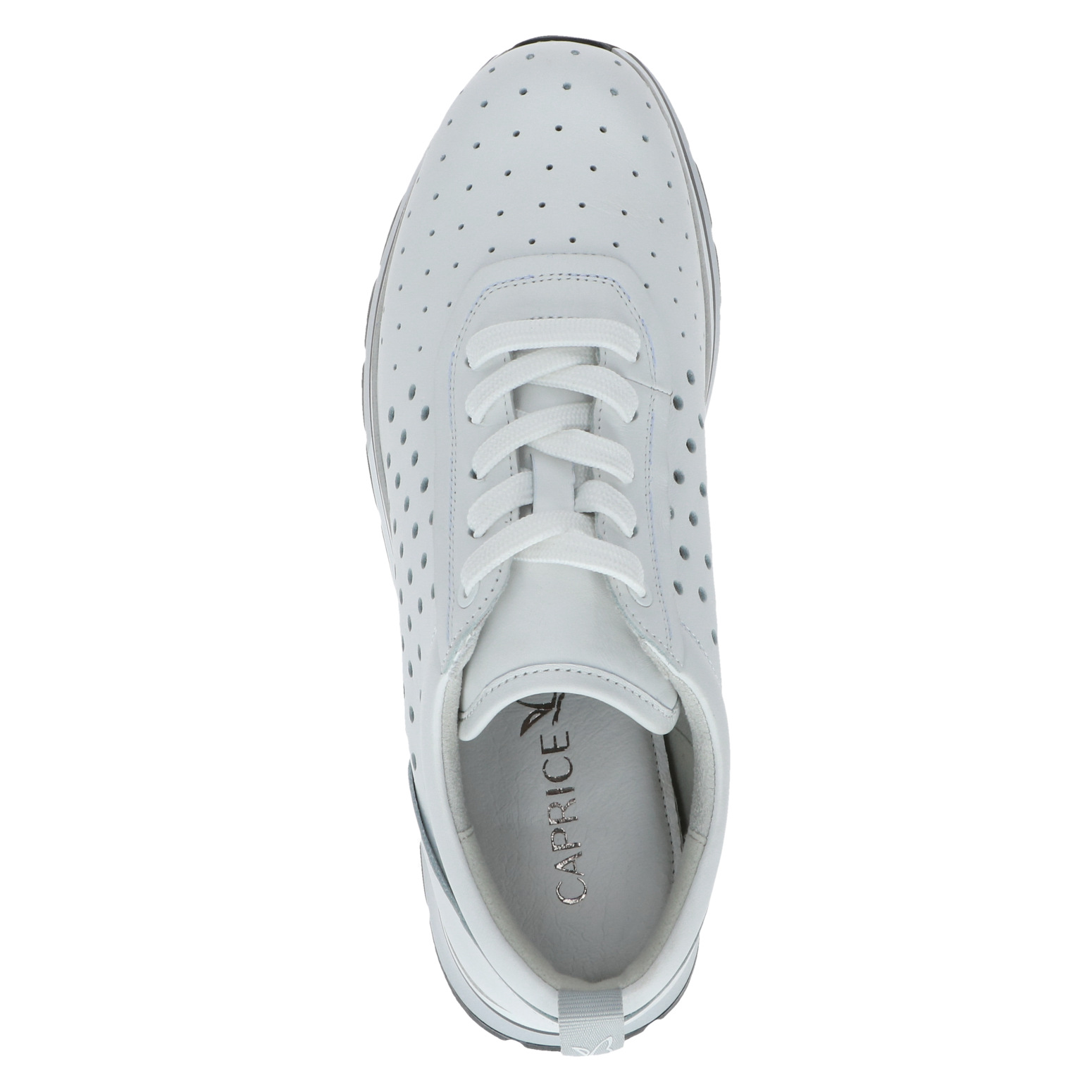 Дамски, спортни обувки oт световноизвестната марка Caprice. Външната част е изработена от висококачествена, естествена кожа. Хастара се състои от антибактериален текстил с анатомична форма в комбинация със стелка изцяло от естествена кожа. Тя допринася за комфортта през целия ден. Моделът е изключително мек и удобен. Височината на подметката е 4 см. Моделът се пристяга лесно с връзки и е с ефирна перфорация, която допринася за добрия климат на вашите ходила.