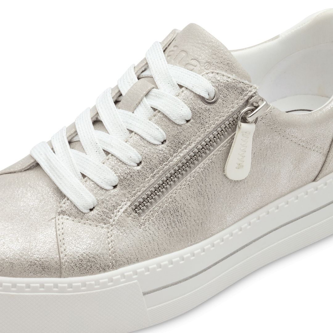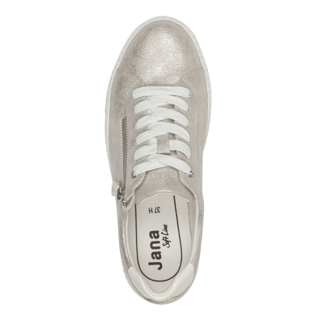 Дамски спортни обувки от немската марка JANA. Външната част е изработена от изкуствена кожа. Вътрешната част се състои от изкуствена кожа и текстил. Стелките са с мемори пяна. Височината на подметката е 4см.