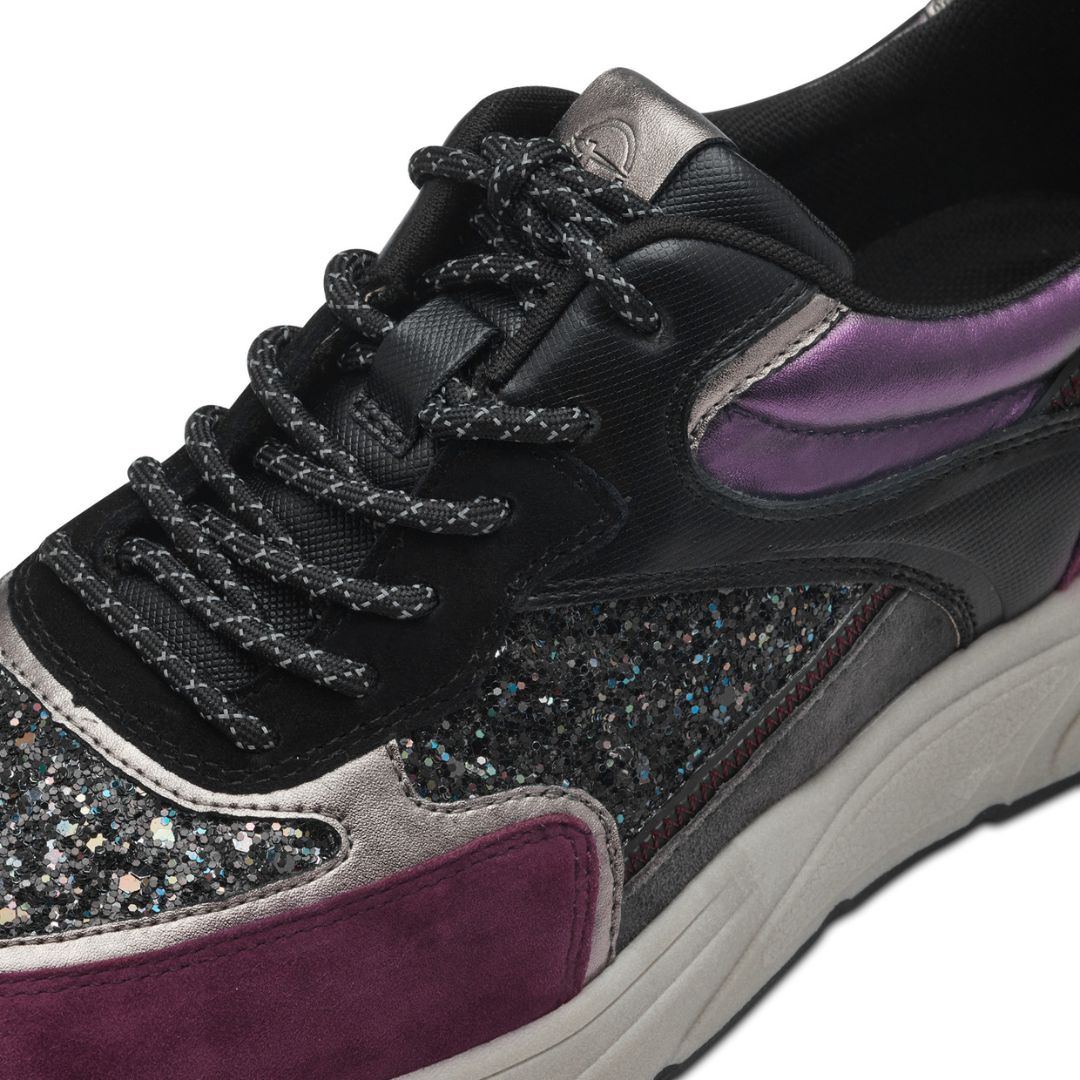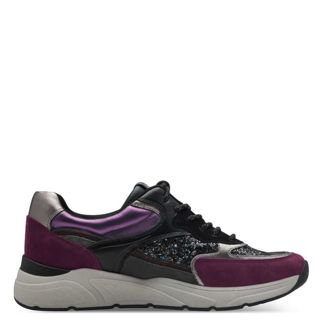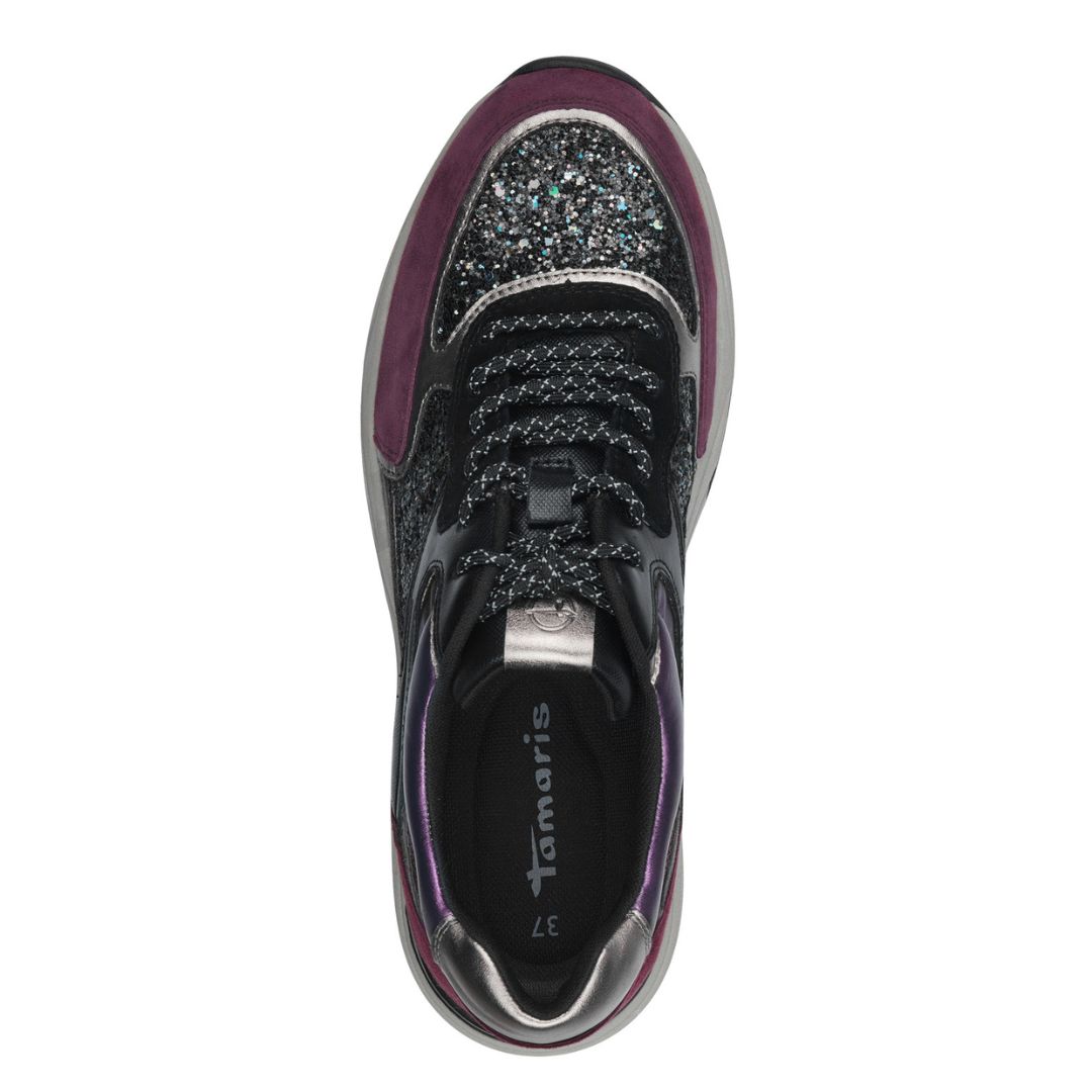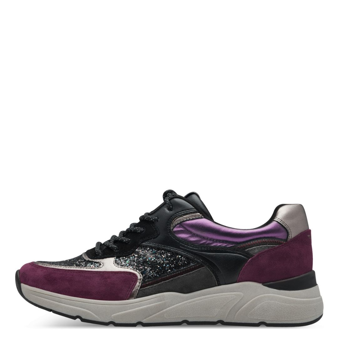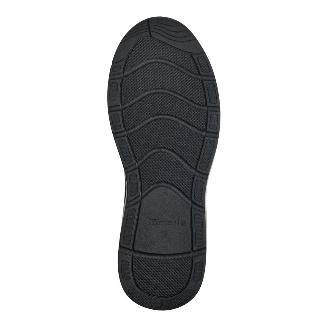 Дамски спорни обувки от немската марка Tamaris. Изработени са в комбинация от естествена и изкуствена кожа. Вътре се състои от антибактериален текстил. Стелката е с мемори пяна с отлична анатомична фирма. Височината на подметката е 3.5см.