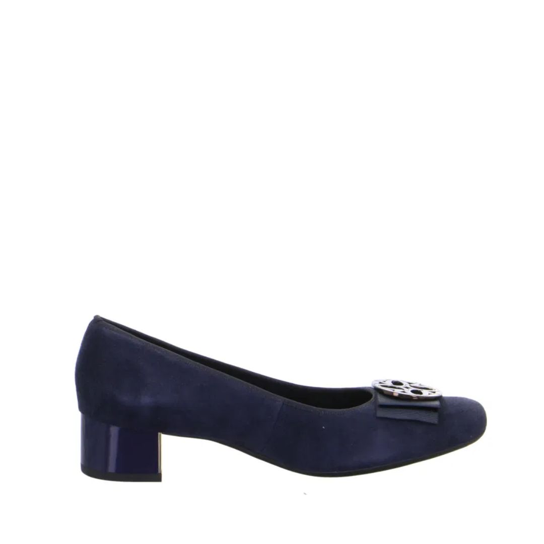Стилните дамски обувки Ara са изработени от висококачествен естествен велур в елегантен тъмносин цвят. Акцентът е изисканата декоративна апликация отпред, която придава изтънченост и завършеност на модела.