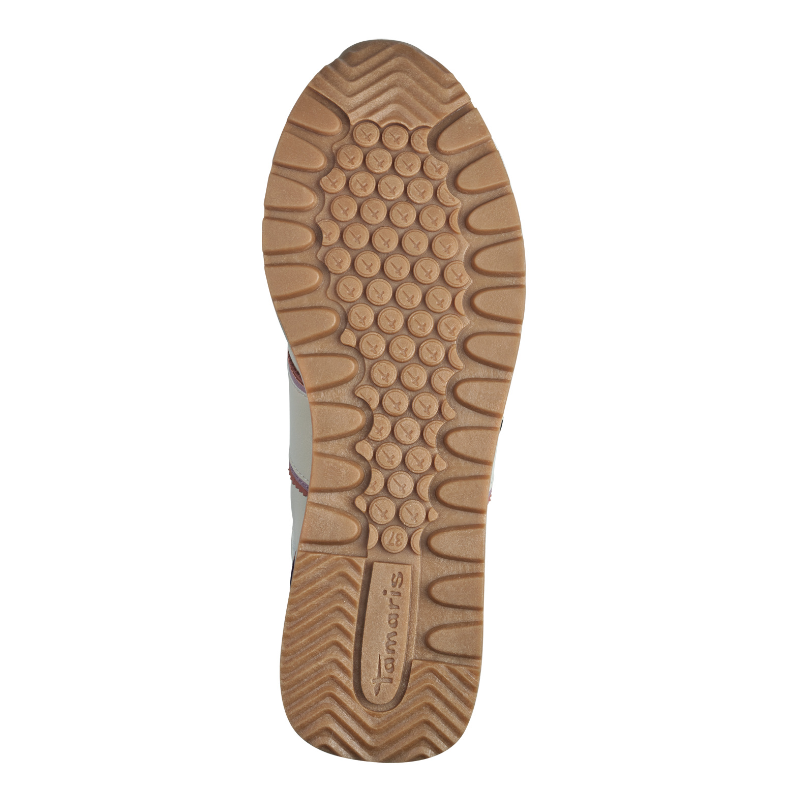 Дамски спортни обувки от немската марка Tamaris. Външната част е изработена от изкуствена кожа в комбинация с текстилни материали. Хастара се състои от антибактериален текстил. Стелката на модела е с мемори пяна, която допринася за оптималния комфорт. Подметка е олекотена, с отлични качества на еластичност и анатомична форма. Височината на ходилото в задната част е 4 см.