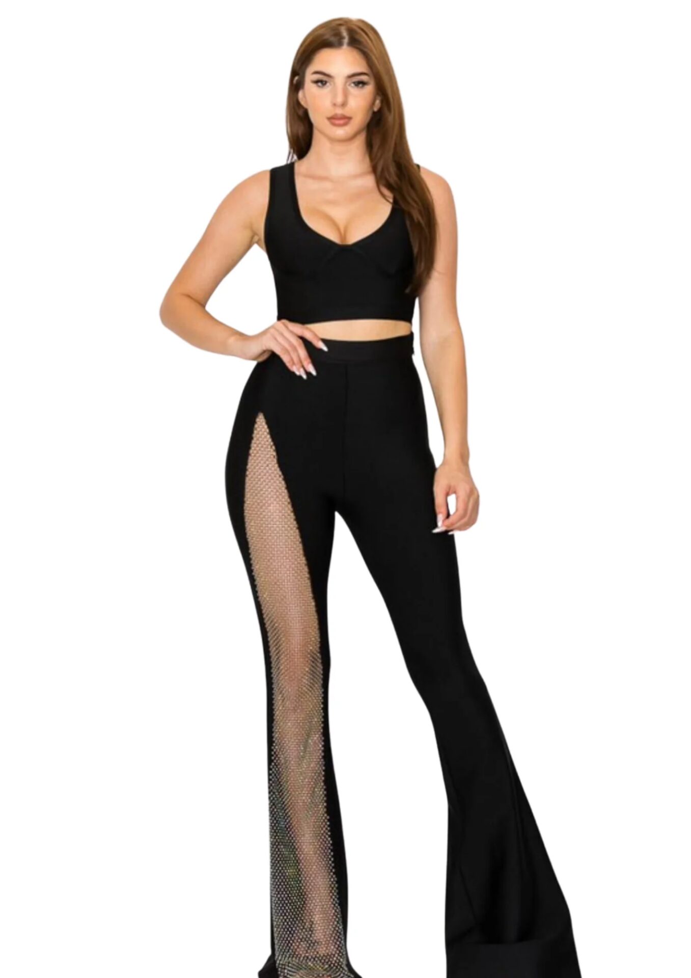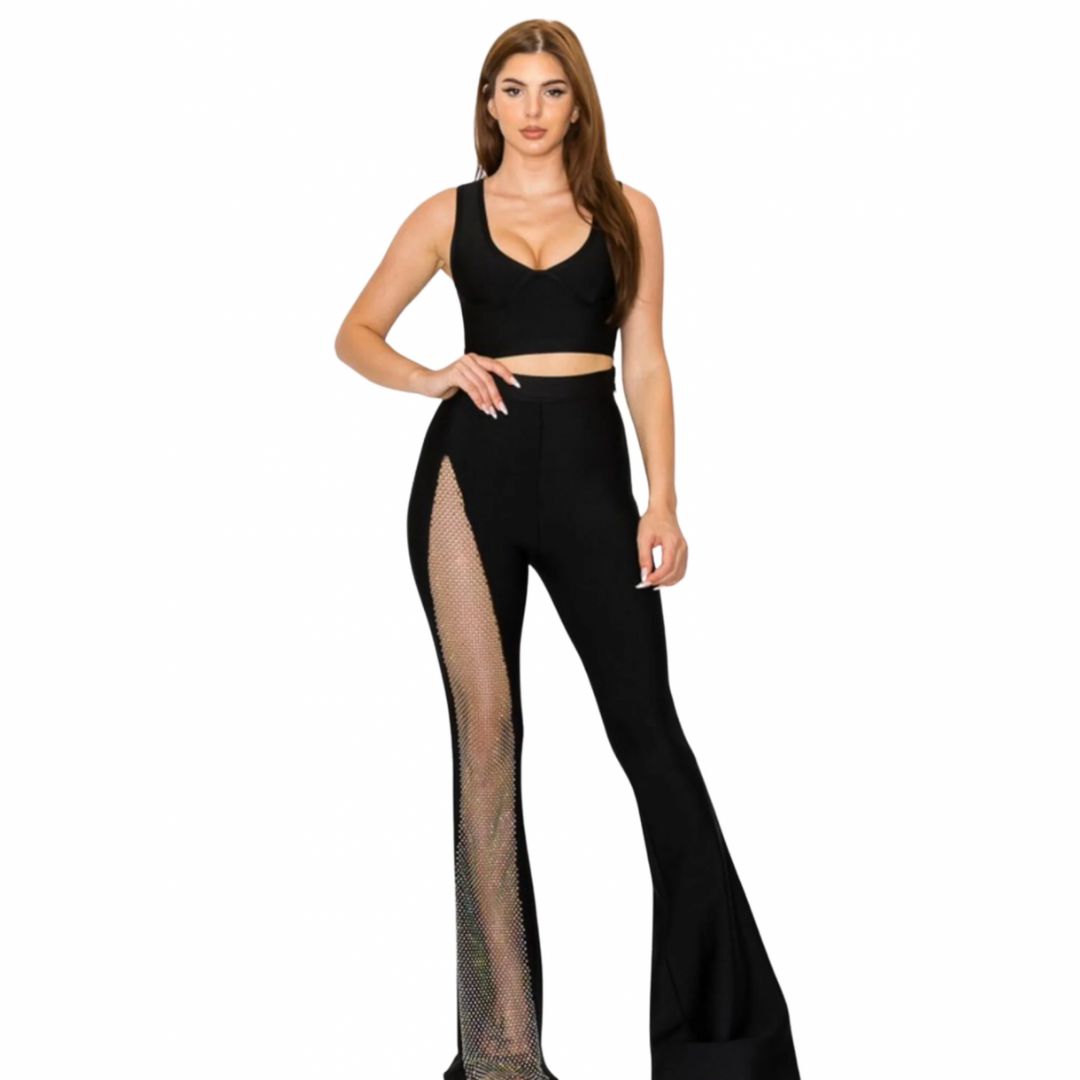 Елегантният дамски комплект Yoncy представлява вълнуваща симбиоза от изтънченост и съвременен стил. Бюстието е въведение в изисканата атмосфера на комплекта, като подчертава женската грация с изчистени линии и деликатни детайли. С дългия паталон комплектът придобива изключителна изтънченост и стил.