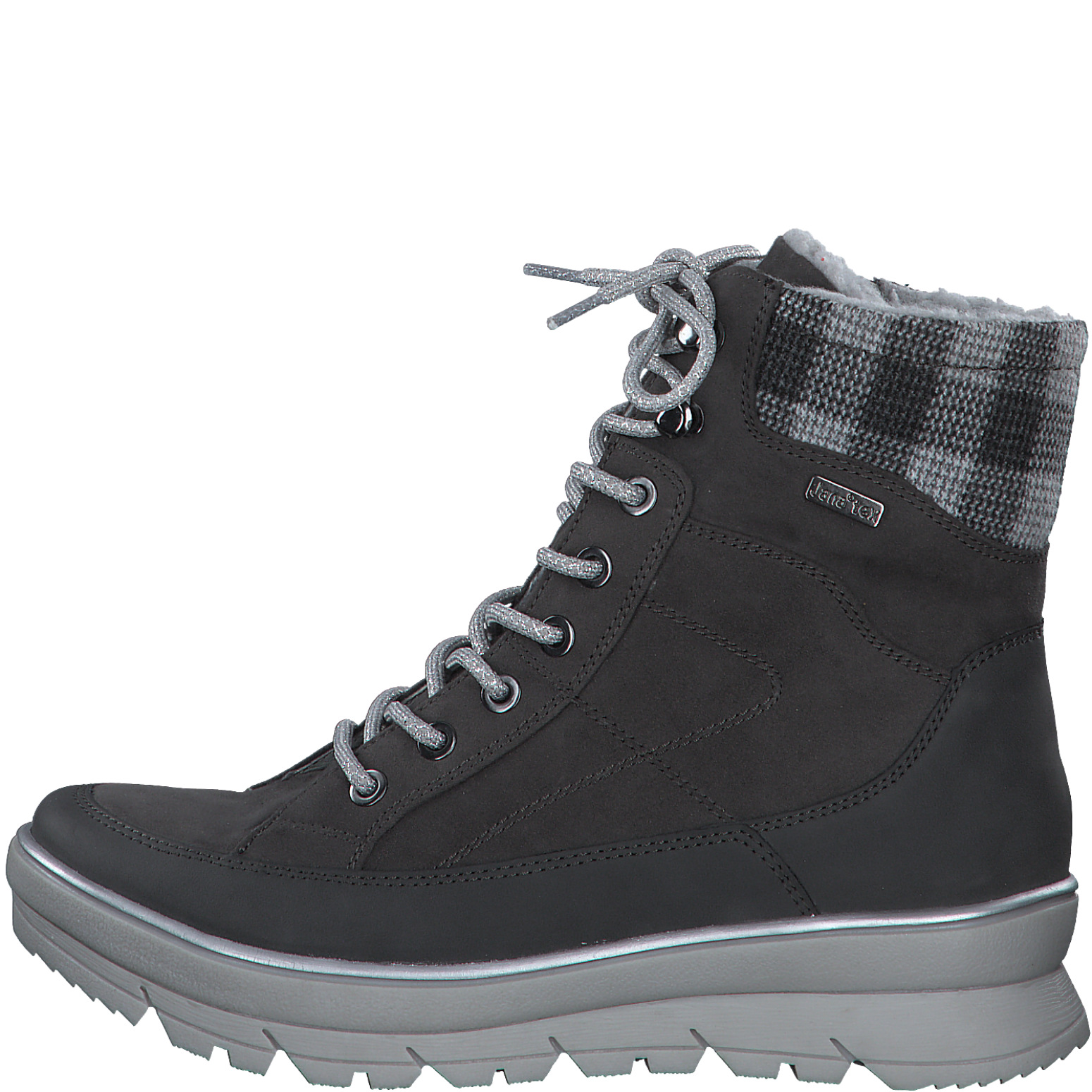 Дамски боти от немската марка JANA. Външната част на модела е изработена от висококачествени текстилни материали с TEX мембрана. Вътрешната част е изработена от топли, текстилни материали. 50% от състава на подметката е изработена от рециклирани материали. Налице е JanaTex технология за допълнителна защита от студ и влага. Височината на ходилото в задната част е 3,5см. Моделът се закопчава лесно с цип и връзки. Изключително издръжлив модел, който предпазва крака ви в студените дни.