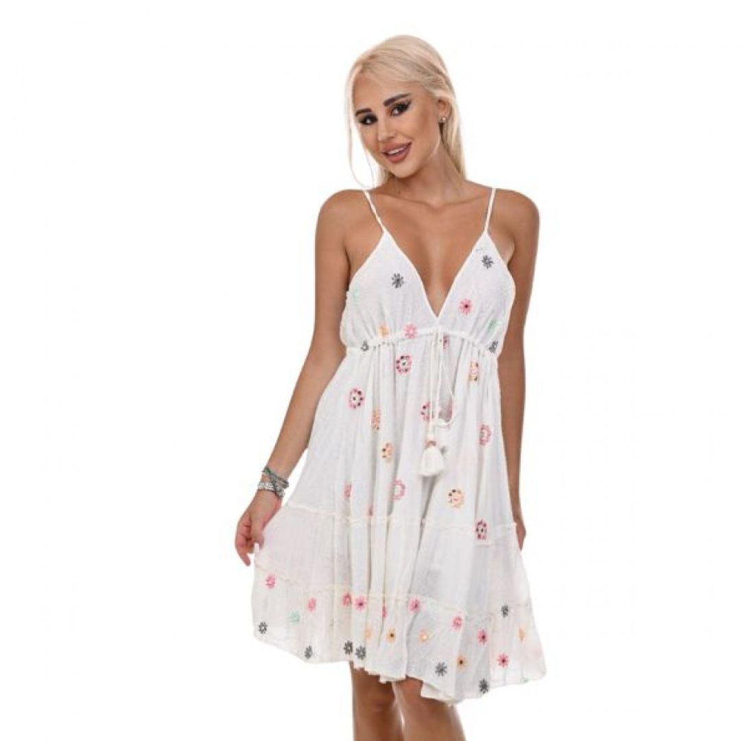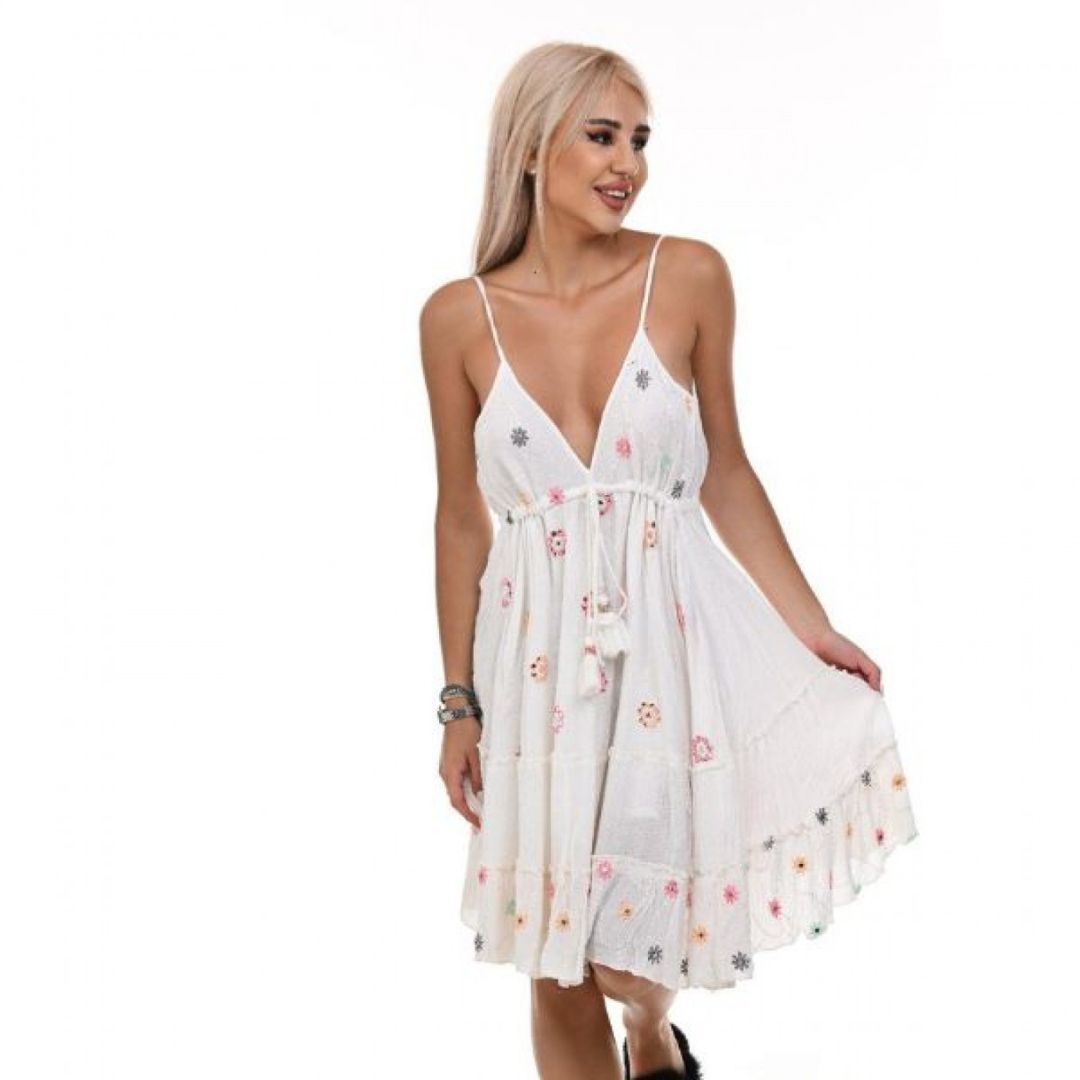 Тази бяла плажна рокля е вашият перфектен спътник за всяко лятно приключение – от разходки по брега до стилни вечери край морето. С нея ще се чувствате уверени и готови да покорите всяко лятно предизвикателство с неподправена елегантност.