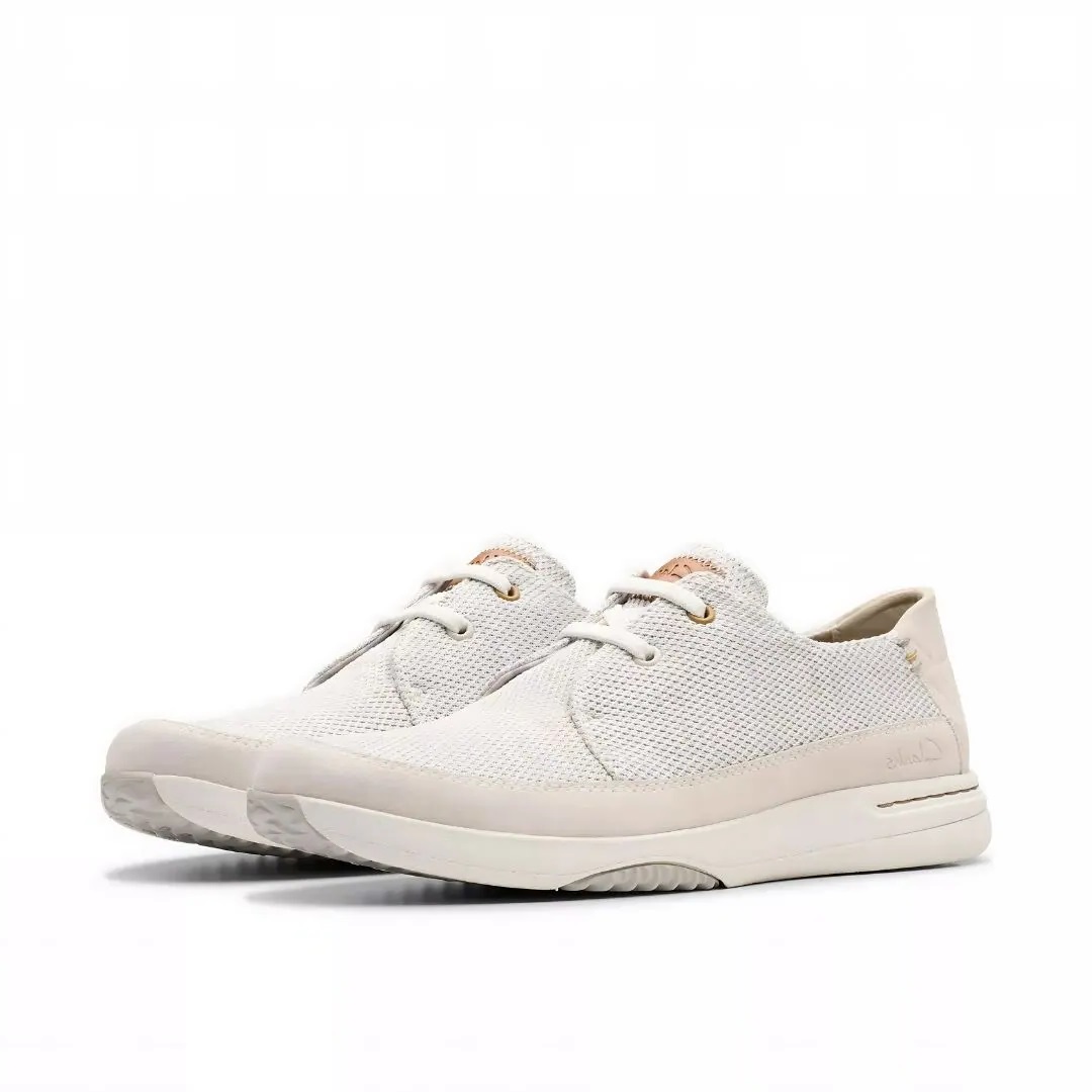 Мъжки обувки от английската марка Clarks. Външната част е изработена от висококачественa естествена кожа в комбинация с текстилни материали. Вътрешната част е от антибактериални, текстилни материали. Височината на ходилото в задната част е 3 см. Невероятно леки и издръжливи, благодарение на гумената външна подметка EVA. Моделът се пристяга лесно с връзки.