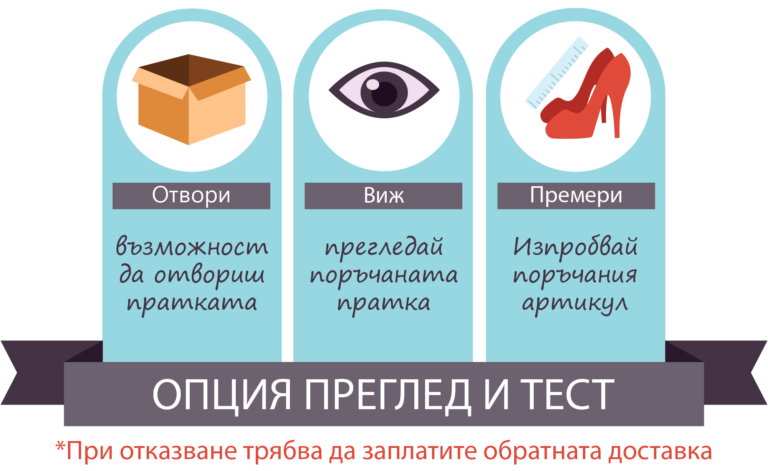 При доставка ще имате възможността да отворите, видите и премерите доставените обувки, преди да извършите плащането на куриера.