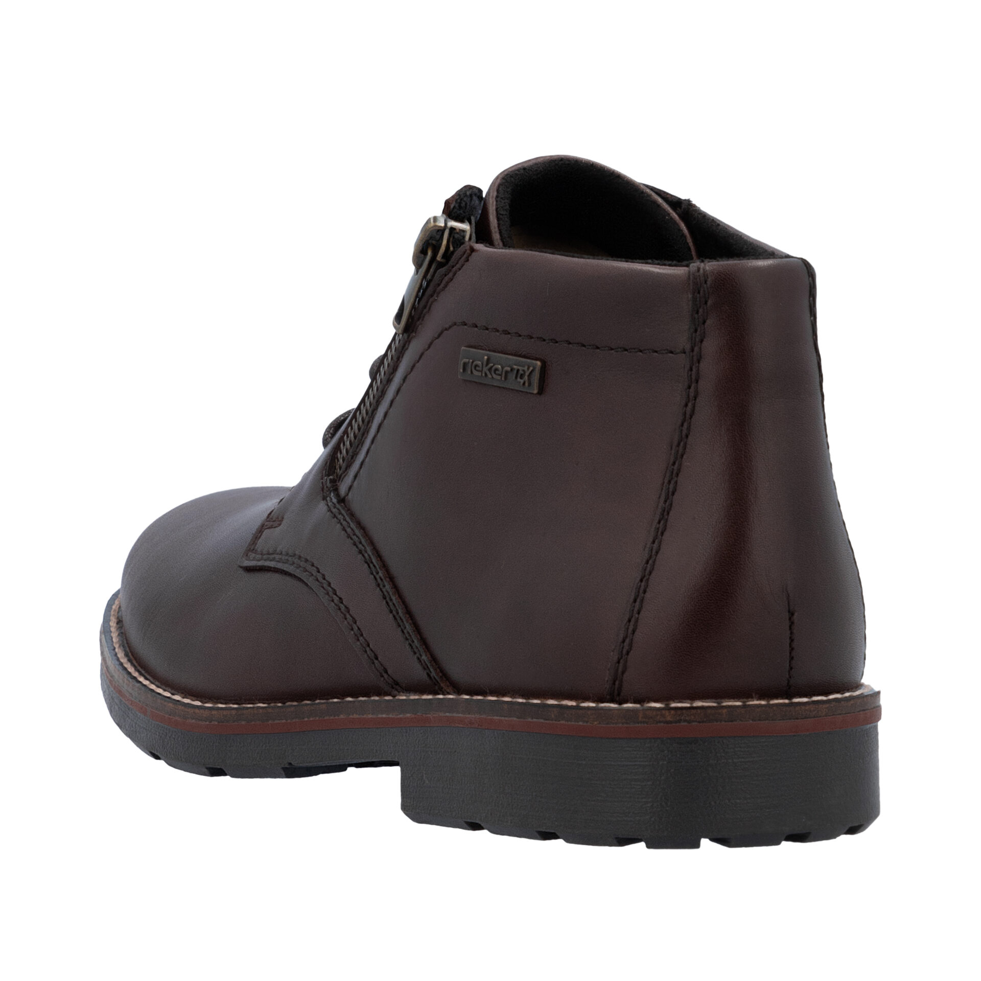 Тези мъжки обувки излъчват стилна функционалност — изработени са от гладка кожа в тъмнокафяв тон, която придава едновременно елегантност и устойчивост. Комбинацията от връзки и страничен цип осигурява лесно обуване, а удобната кройка гарантира комфорт при целодневно носене. Благодарение на вградената мембрана RiekerTEX, моделът предлага защита от влага и оптимална дишаемост, така че краката да остават сухи и комфортни дори при по-унищожително време. Подметката е износоустойчива и проектирана за стабилност, което прави ботушите подходящи за ежедневието — както за градски визии, така и за по-спокойни излизания.