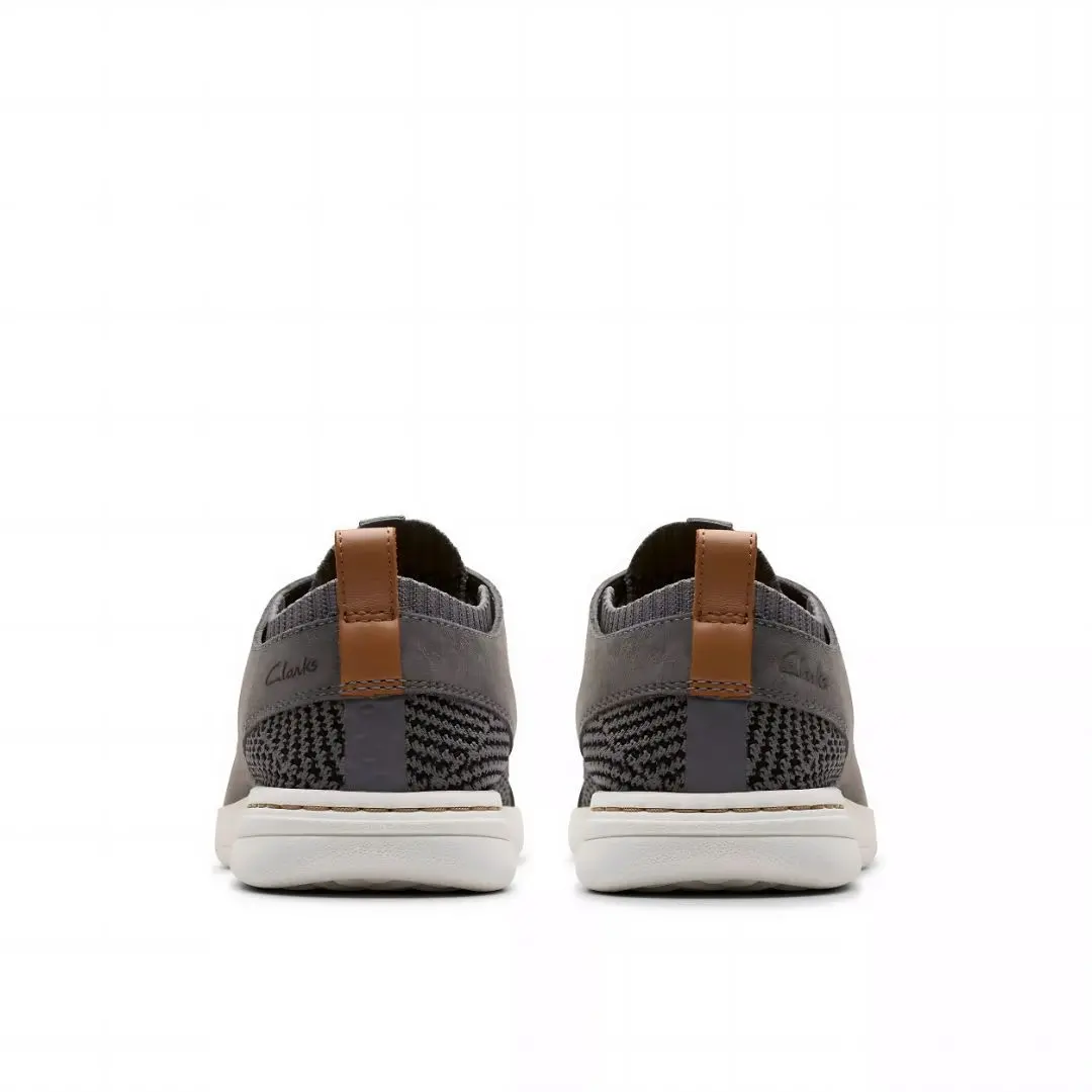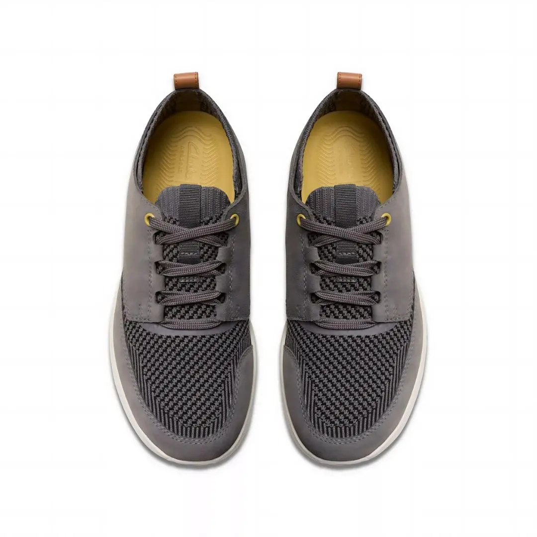 Мъжки обувки от английската марка Clarks. Външната част е изработена от висококачественa естествена кожа в комбинация с текстилни материали. Вътрешната част е от антибактериални, текстилни материали. Височината на ходилото в задната част е 3 см. Невероятно леки и издръжливи, благодарение на гумената външна подметка EVA. Моделът се пристяга лесно с връзки.