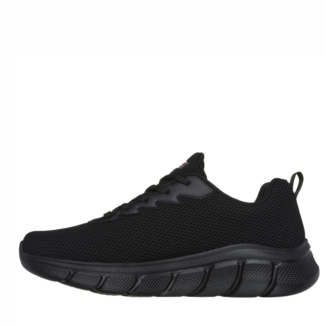 Мъжки спортни обувки от световноизвестната марка Skechers. Външната част е изработена от текстил. Вътрешната част също е изработена от антибактериален текстил и анатомично оформена стелка с мемори пяна. Гъвкавата и лека подметка е с шокоабсорбиращи свойства, намаляващи напрежението по време на ходене.