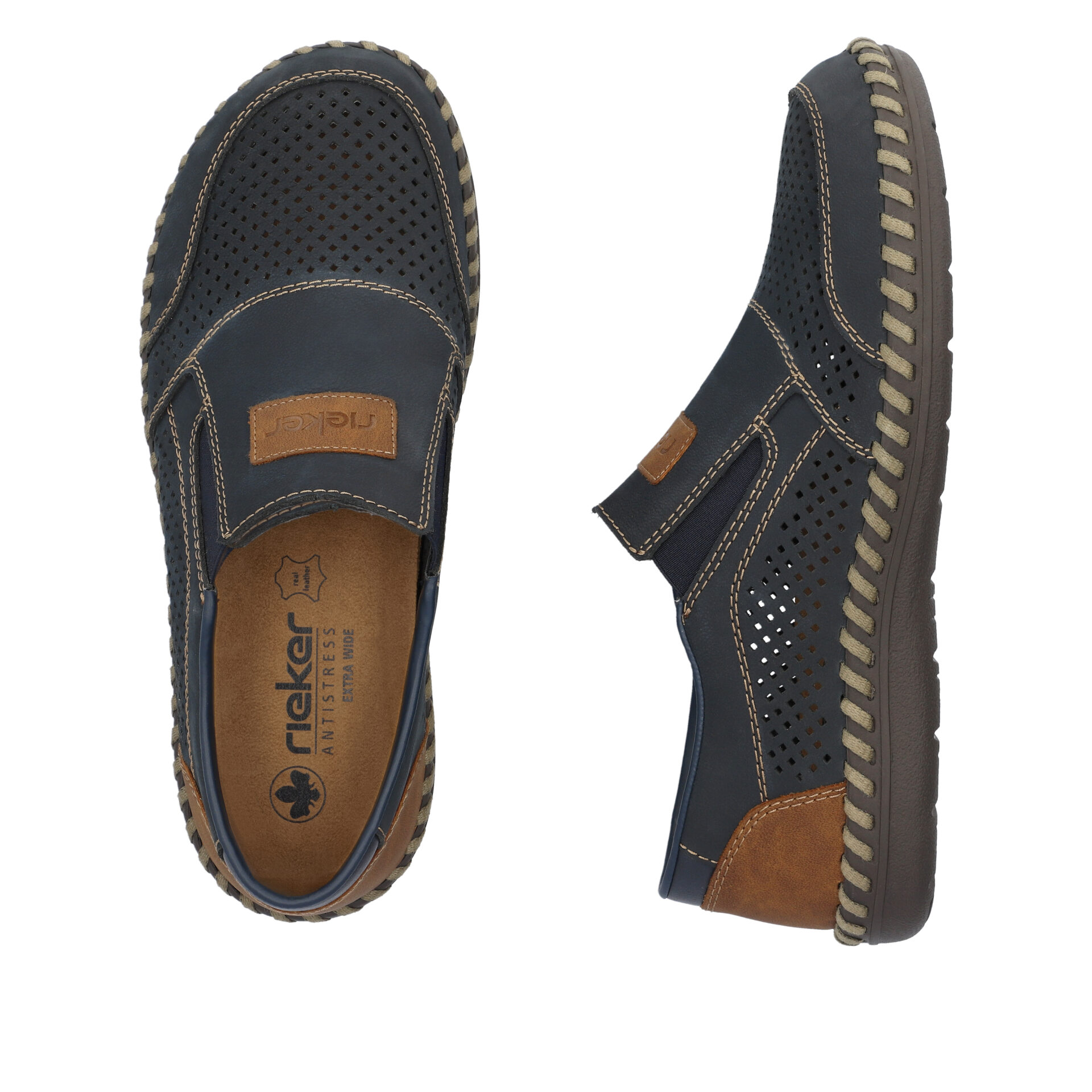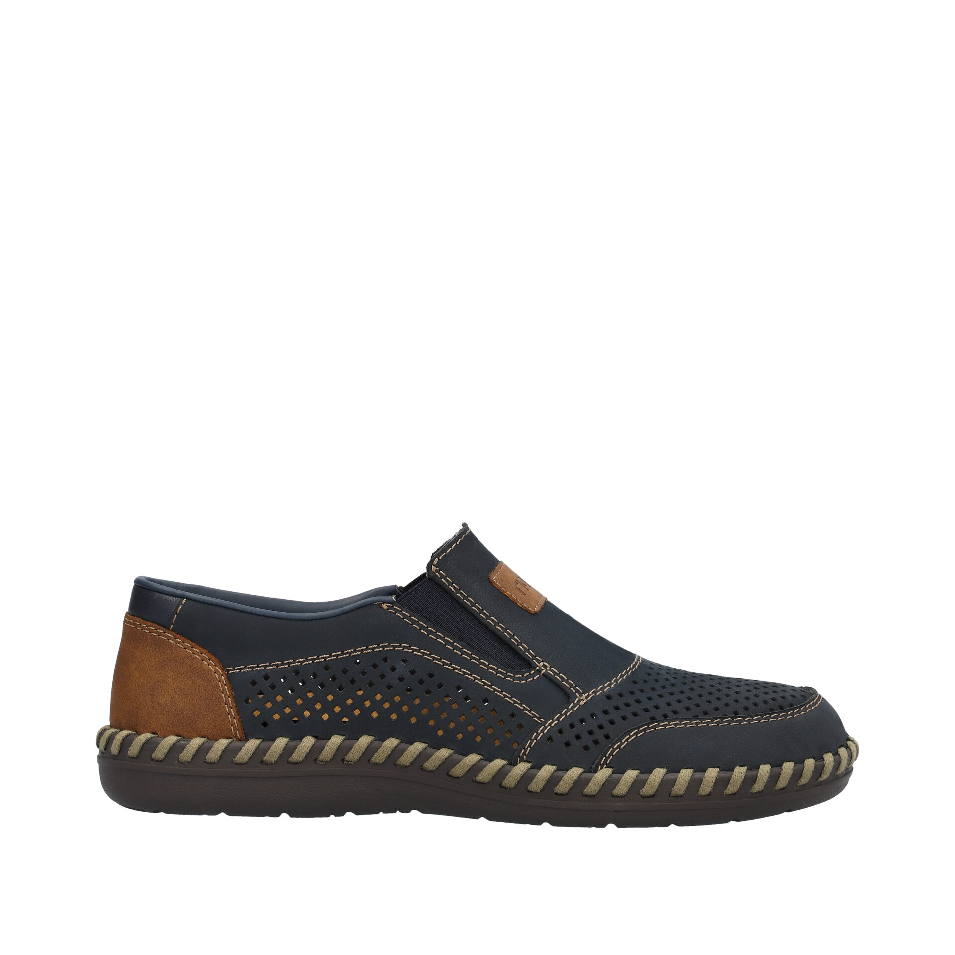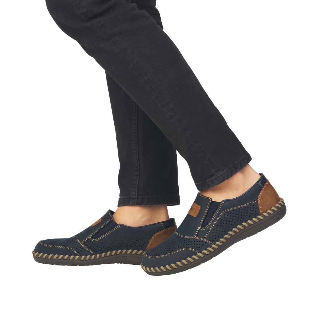 Rieker Мъжки Обувки – Тъмносини Лоуфъри с Контрастни Шевове и Перфорации