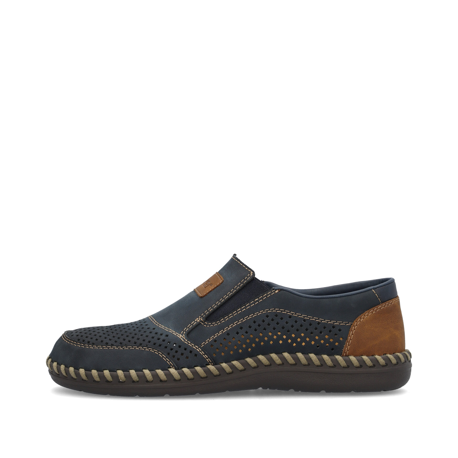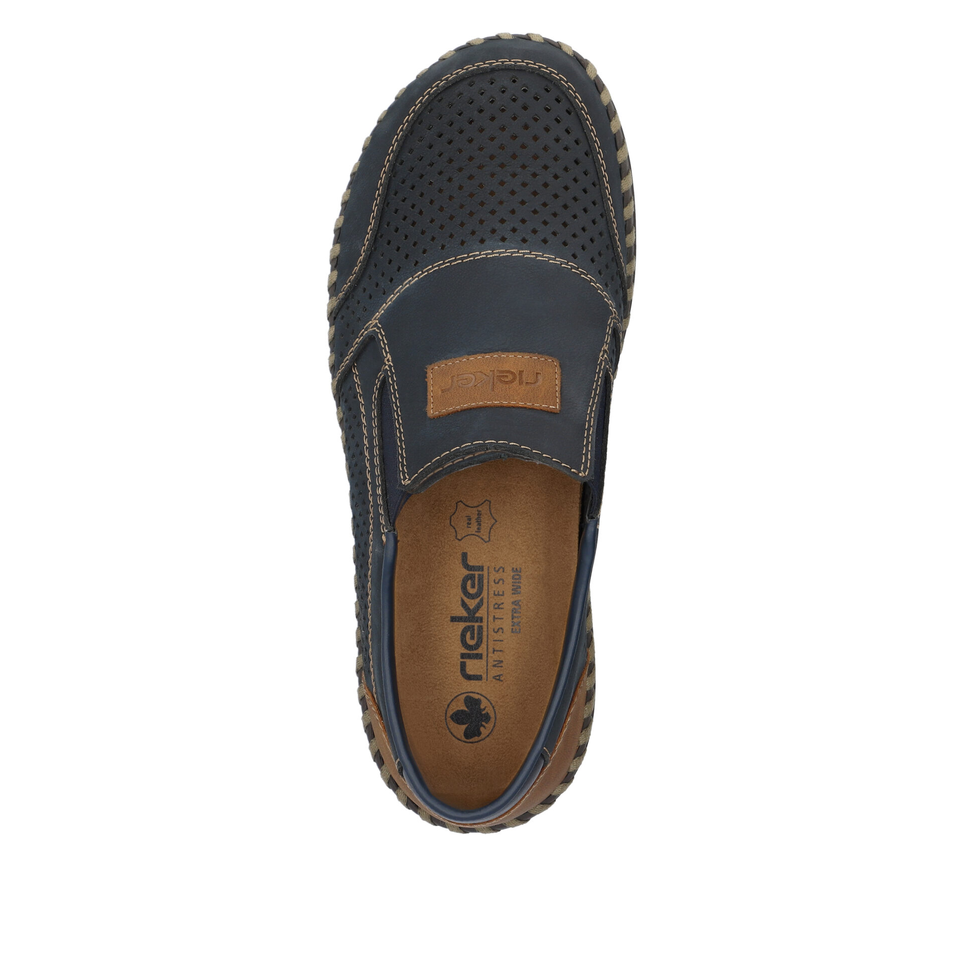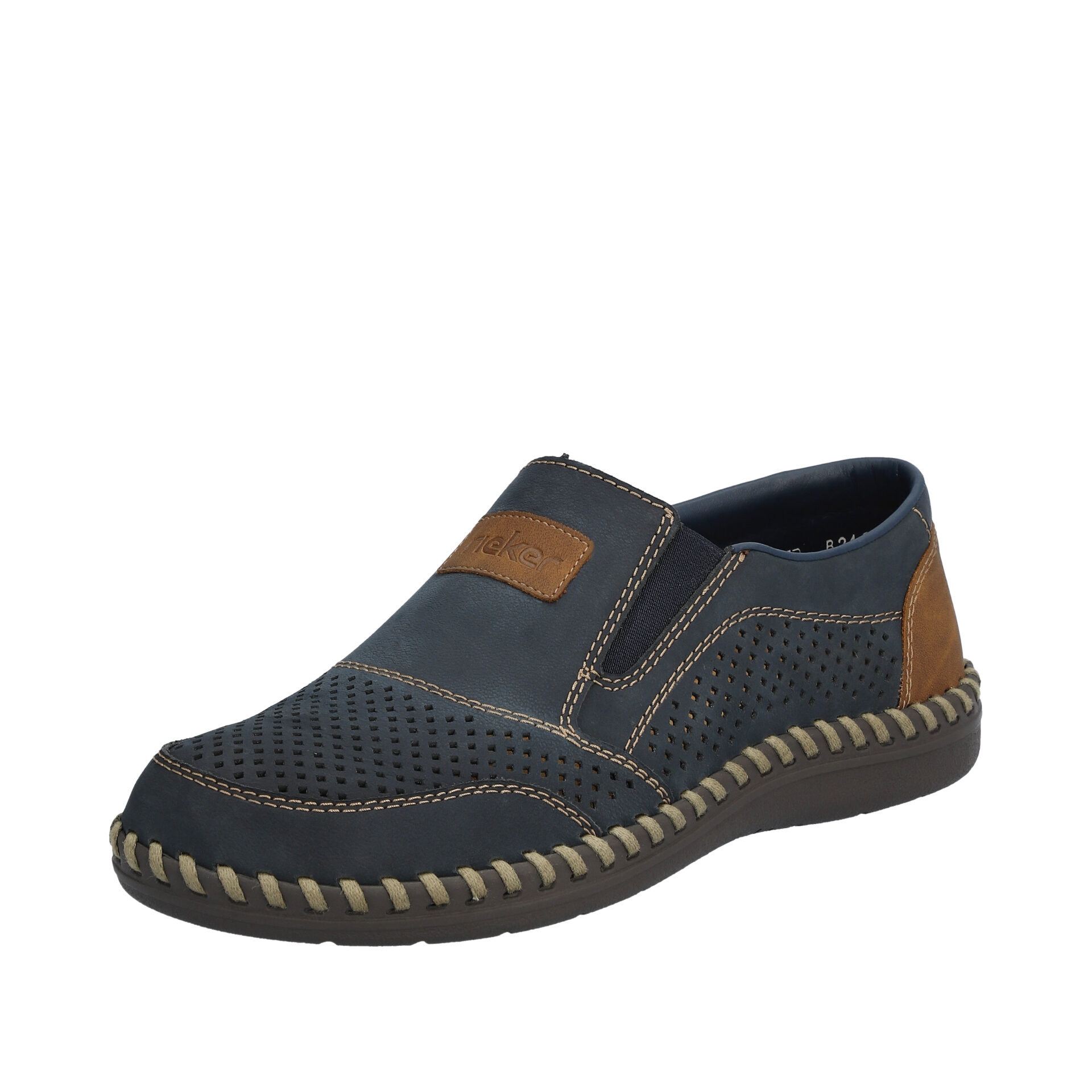 Rieker Мъжки Обувки – Тъмносини Лоуфъри с Контрастни Шевове и Перфорации