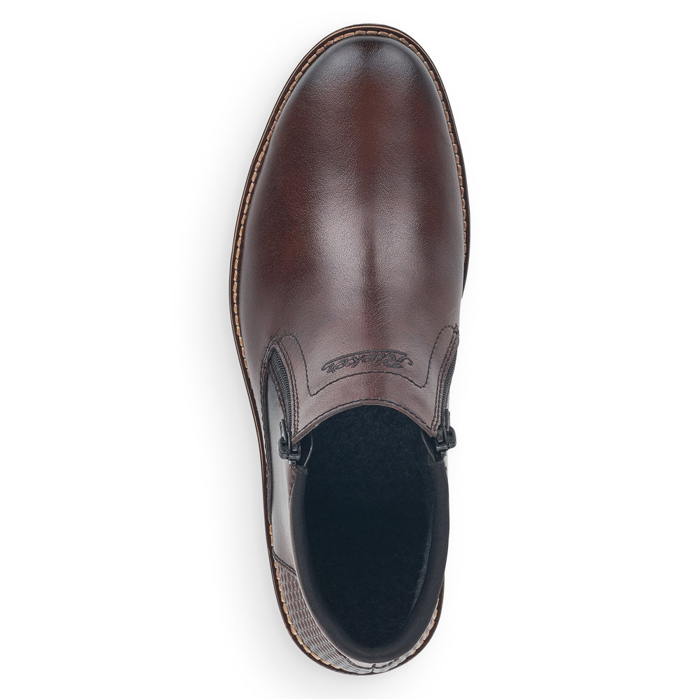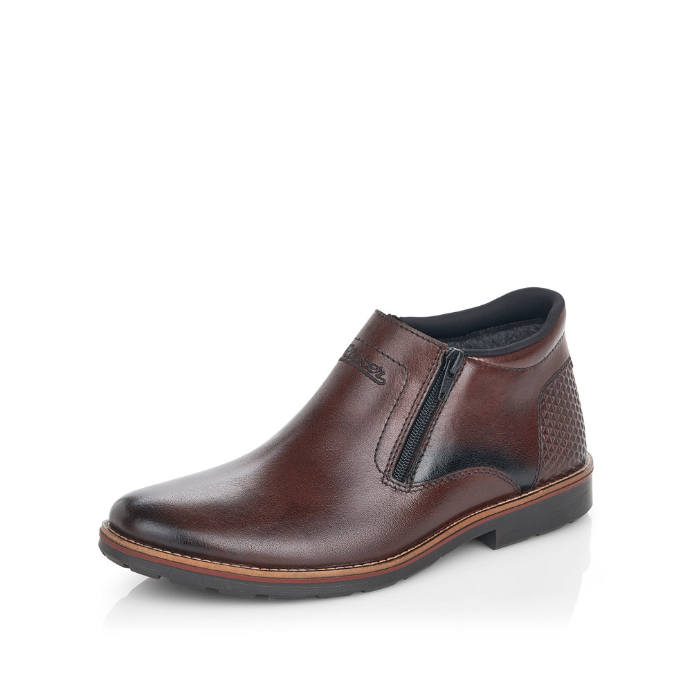 Мъжки обувки от немския производител Rieker. Външната част е изработена от висококачествена естествена кожа, а вътрешната се състои от топъл, антибактериален текстил, който предпазва от изпотяване и неприятна миризма. Височината на подметката в задната част е 2.5 см. Ходилото тип ANTISTRESS гарантира спад в напрежението на гръбнака,междупрешленните дискове и ставите.