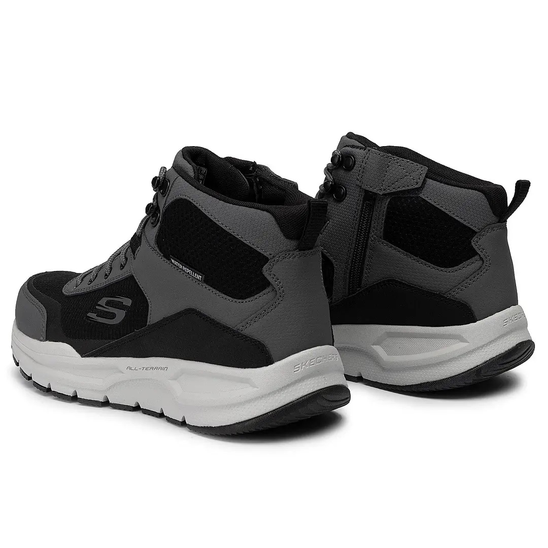 Мъжки спортни обувки от световноизвестната марка Skechers. Този модел е изработен в класическите сив цвят, като външната част е изработена от естествена кожа, еко-кожа и текстилни материали, покрити с Текс мембрана. Вътрешната част също е изработена от антибактериален текстил и анатомично оформена стелка с Air Cooled мемори пяна. Гъвкава и лека подметка с шокабсорбиращи свойства намаляващи напрежението по време на ходене.