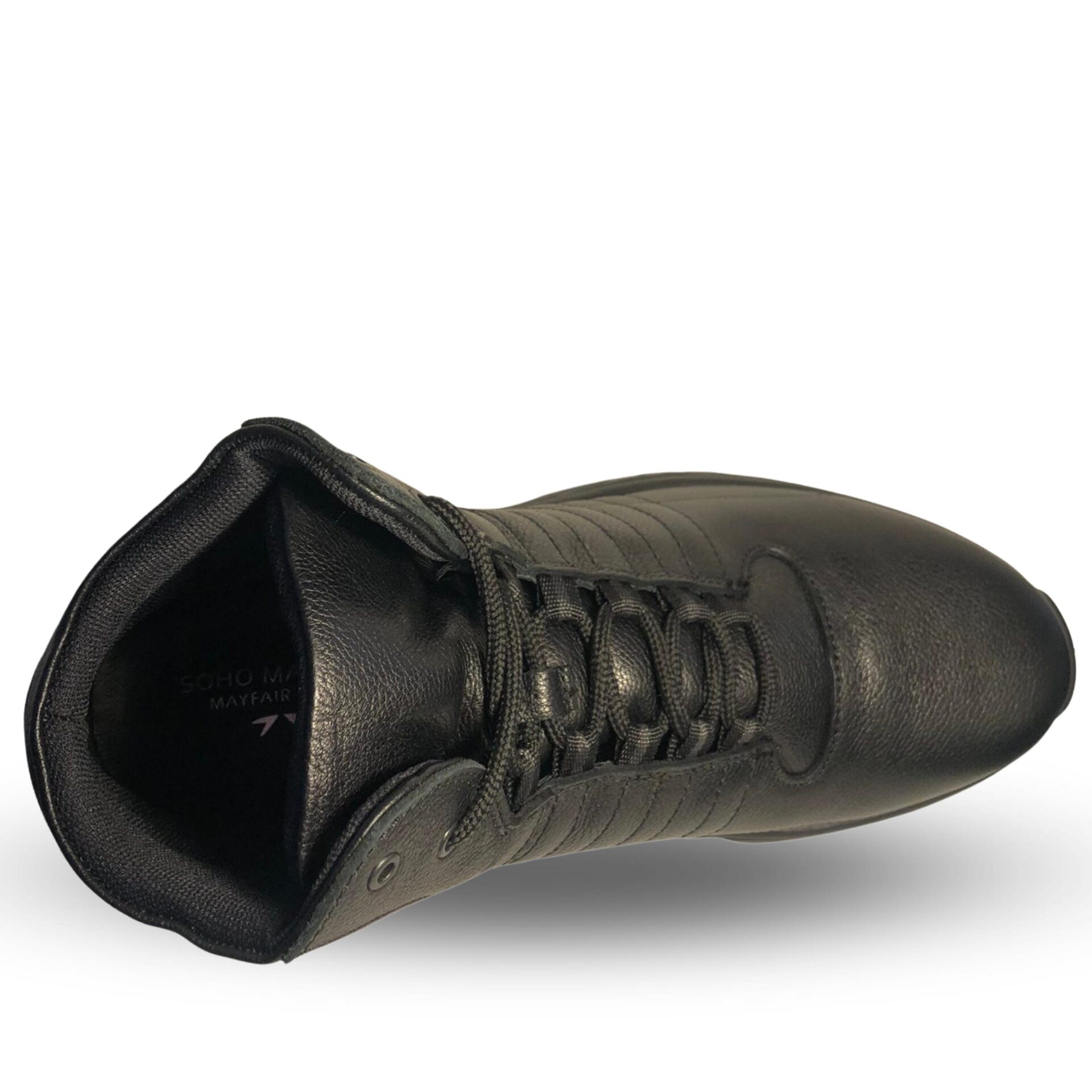 Мъжки боти на марката Soho Mayfair. Външната част на модела е изработен от естествена кожа. Вътрешната част е изработена от естествена кожа и текстилни материалиу. Дебелината на подметката в задната част е 3.5 см. Обуват се лесно благодарение на връзките.