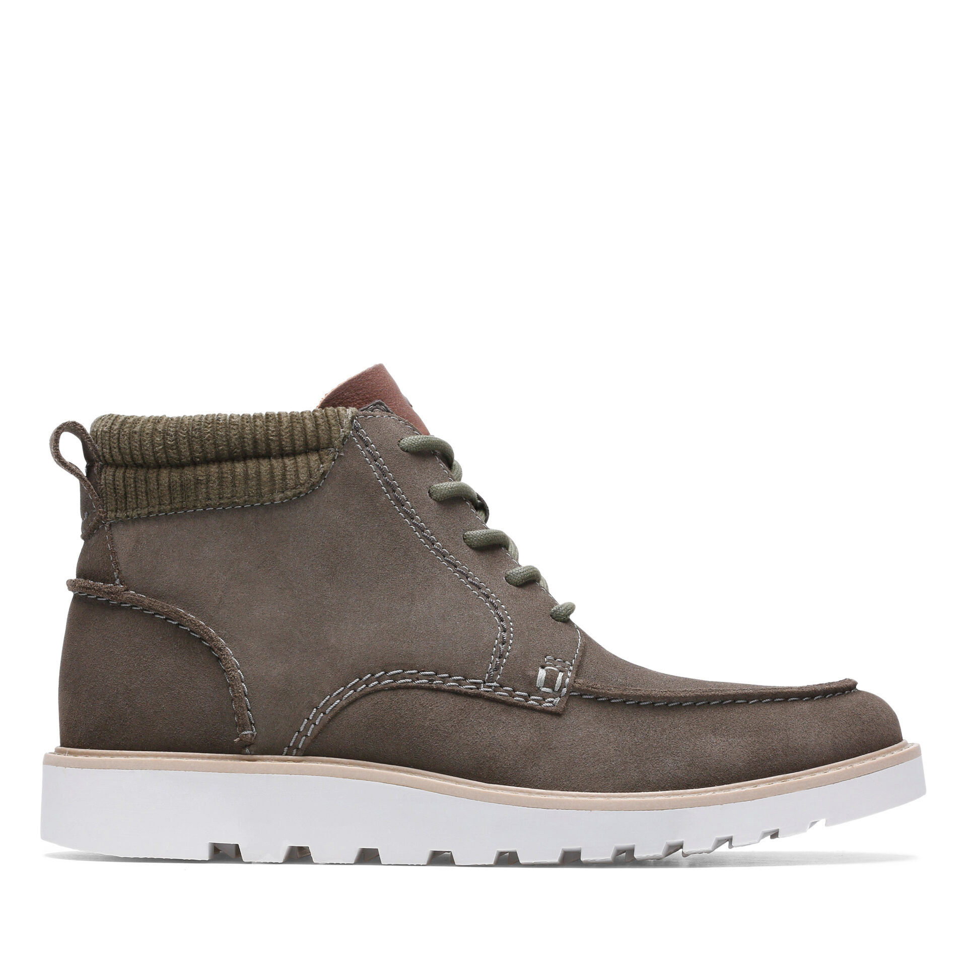 Мъжки боти от английската марка Clarks. Външната част е изработена от висококачествен естествен набук. Хастара се състои от текстилни материали. Невероятно леки и издръжливи, благодарение на гумената външна подметка EVA. Моделът се пристяга лесно с връзки.