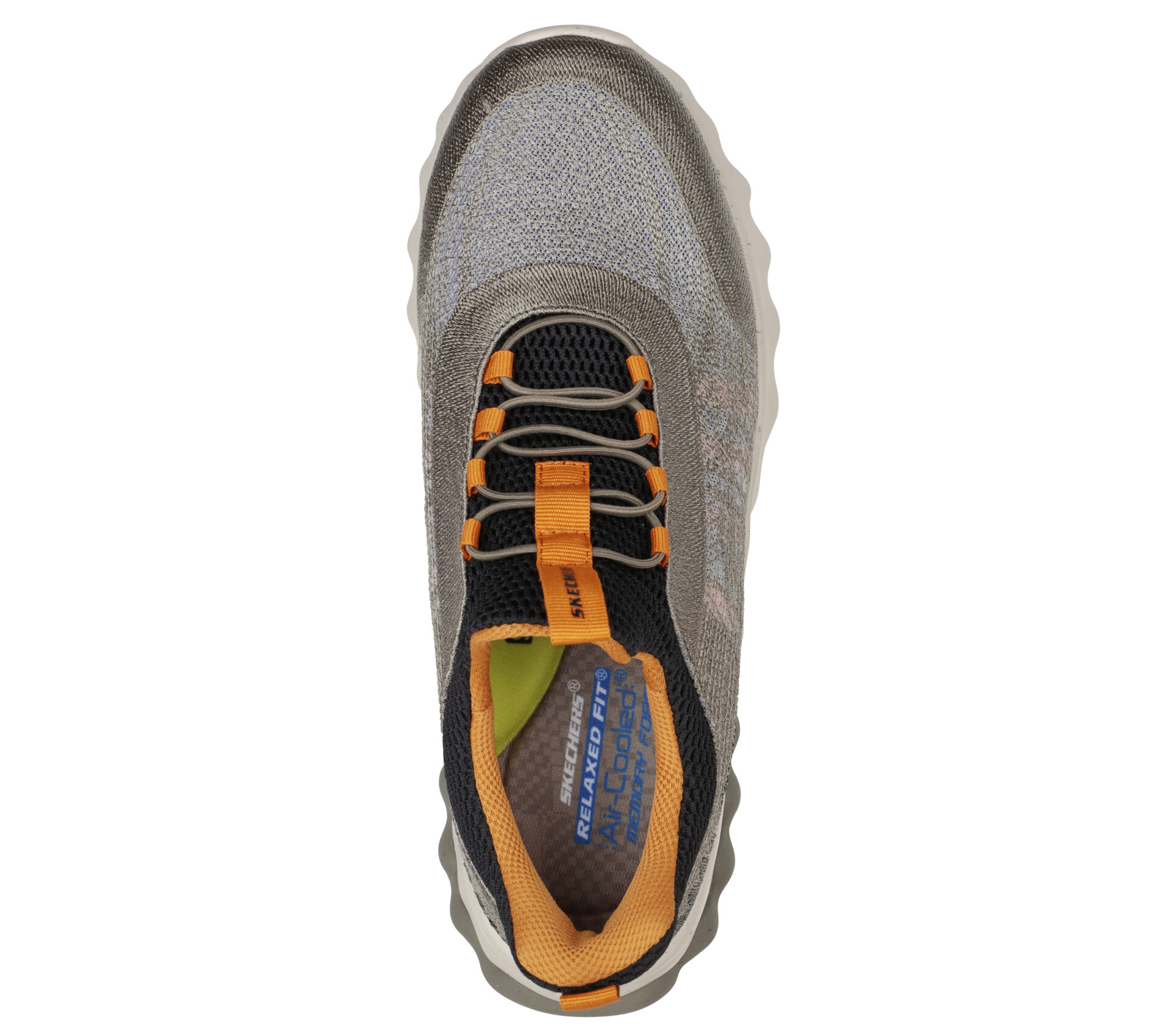 Мъжки спортни обувки от световноизвестната марка Skechers. Този модел е в интересна цветова комбинация от цвят- каки и оранжево, като външната част е изработена от синтетични и текстилни материали.  Вътрешната част е изработена от антибактериален текстил и анатомично оформена стелка с Air Cooled мемори пяна. Гъвкава и лека подметка с  шокабсорбиращи свойства намаляващи напрежението по време на ходене.