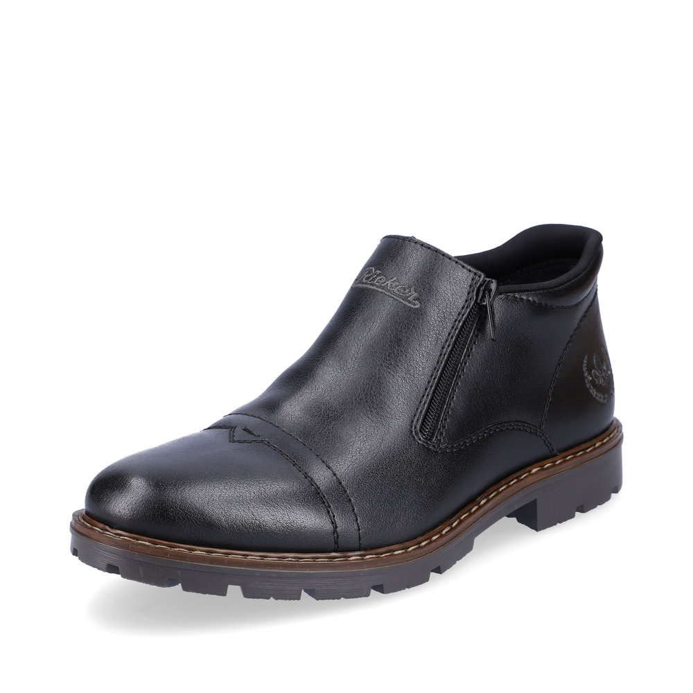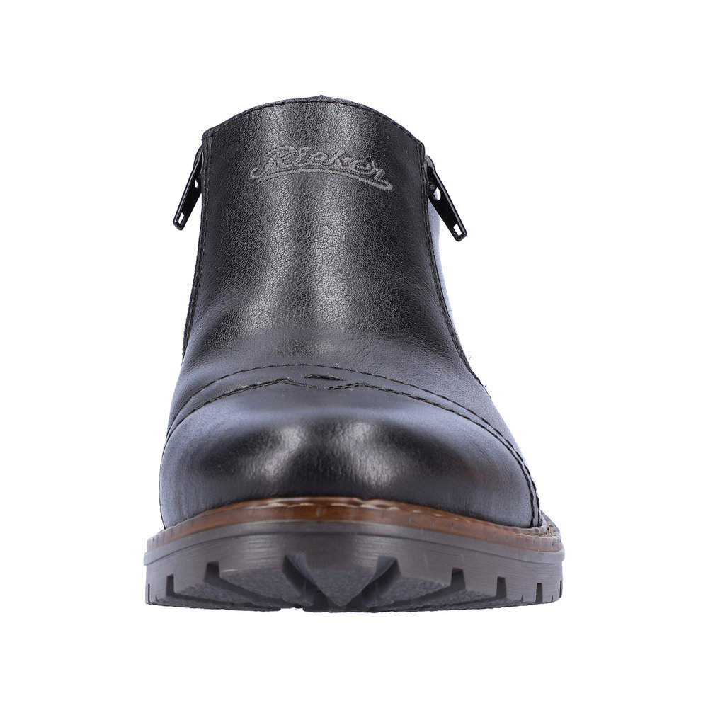 Мъжки боти от немската марка Rieker. Външната част е изработена висококачествена, естествена кожа. Хастара се състои от мека, натурална вълна. Пристягат се лесно с цип. ANTISTRESS ходилото спомага за намаляването на напрежението в гръбнака и ставите.