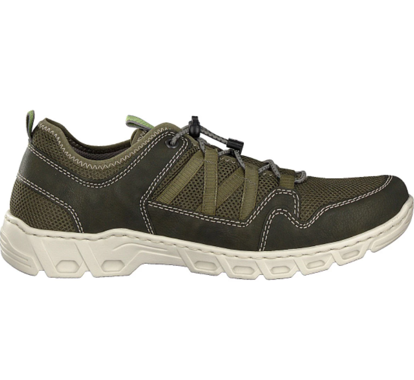 Мъжки спортни обувки от немската марка Rieker. Изработени са от висококачествена, еко-кожа . Хастара се състои от текстилни материлаи. Височината на ходилото в задната част е 3см. Подметката е лека и с изключителни качества на еластичност. Моделът се пристяга лесно с връзки.
