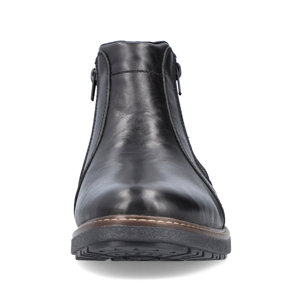 Мъжки боти от немската марка Rieker. Външната част е изработена висококачествена, естествена кожа с текс мембрана. Хастара се състои от топъл антибактериален текстил. Пристягат се лесно с цип. ANTISTRESS ходилото спомага за намаляването на напрежението в гръбнака и ставите. Ботите са подсилени с RiekerTex мембрана за допълнителна защита от студ и влага.