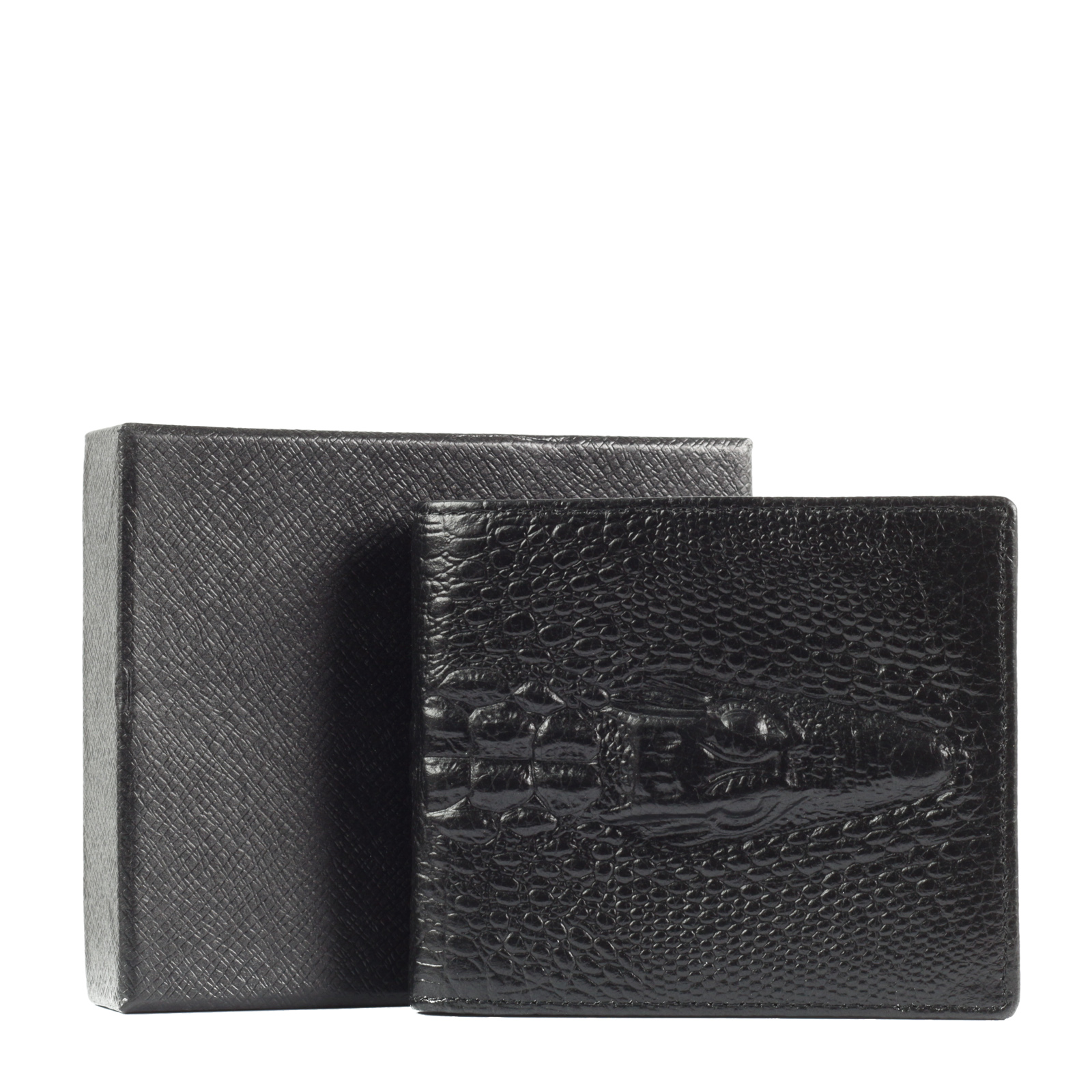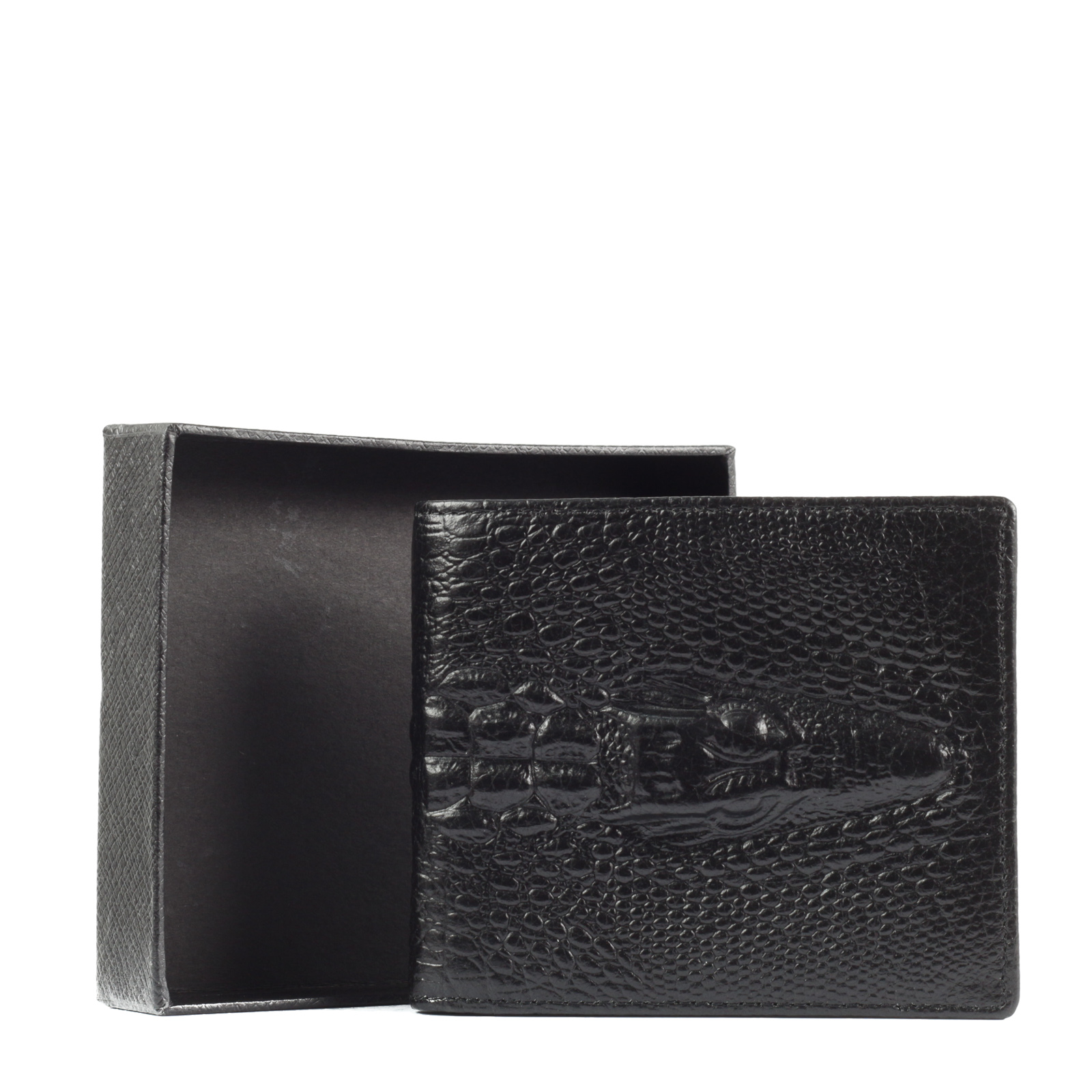 Класически черен портфейл с интересен кроко принт от мека, естествена кожа, снабден с 6 отделения за карти и 2 отделни големи отделения за пари.
