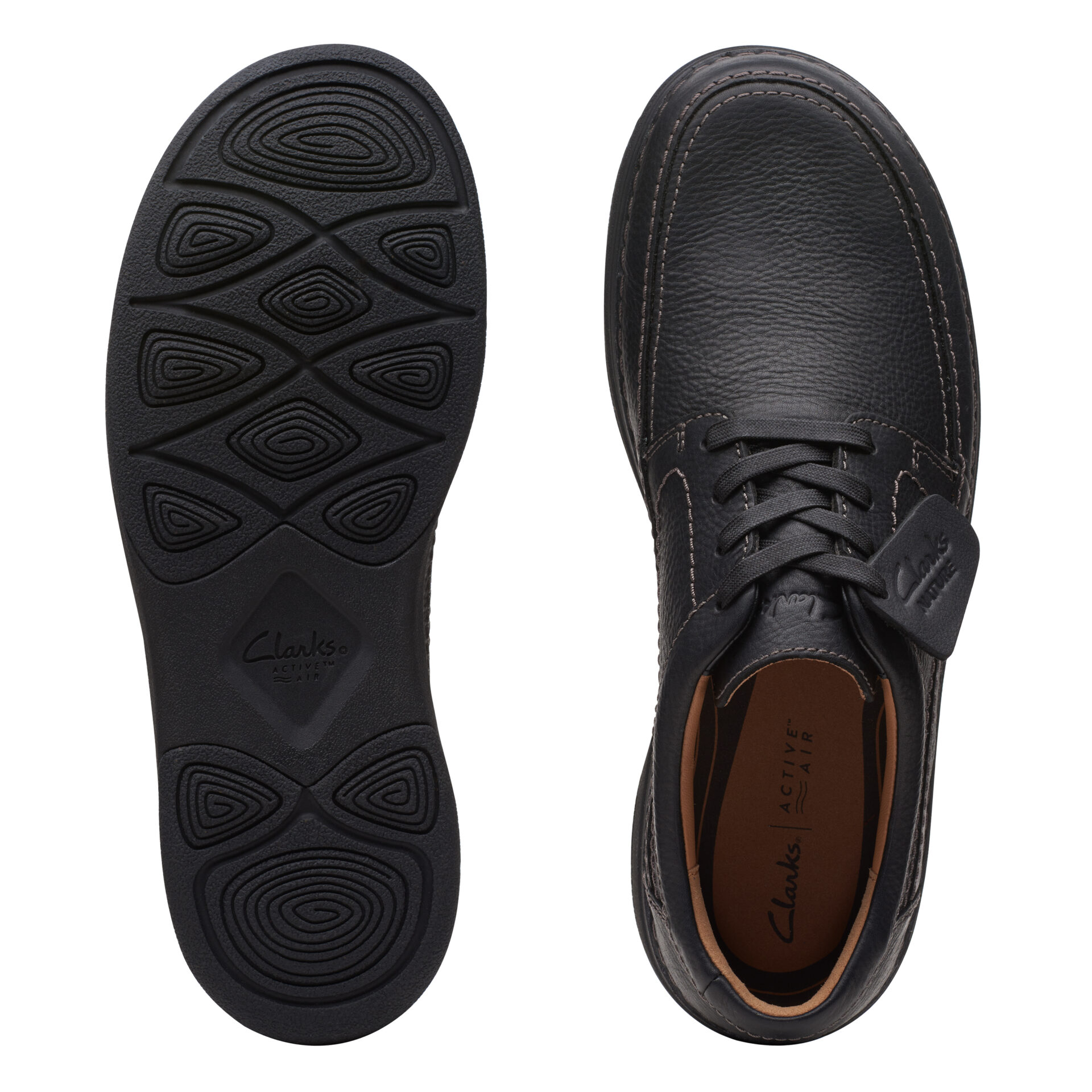 Мъжки спортни обувки от английската марка Clarks. Външната част е изработена от висококачествен, естествена кожа. Вътрешната част е изработена от антибактериални, текстилни материали и стелка от естествена- кожа. Височината на ходилото в задната част е  3 см. Невероятно леки и издръжливи, благодарение на гумената външна подметка EVA. Моделът се пристяга лесно с връзки. Моделът е от колекцията  Active Air  на Clarks, която включва  външна част изцяло изработена от естествена кожа  с  уникална система за циркулация на въздуха за максимален комфорт.