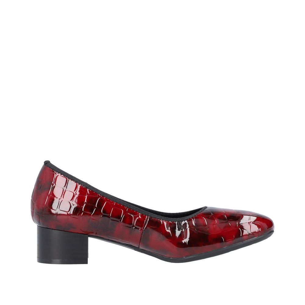 Дамски обувки от немската марка Rieker. Външната част е изработена от висококачествена, естествена кожа, покрита с лак. Хастара е изработен от естествена кожа. Височината на тока е 3.5 см – удобна и полезна височина. ANTISTRESS подметката спомага за намаляването на напрежението в гръбнака и ставите.